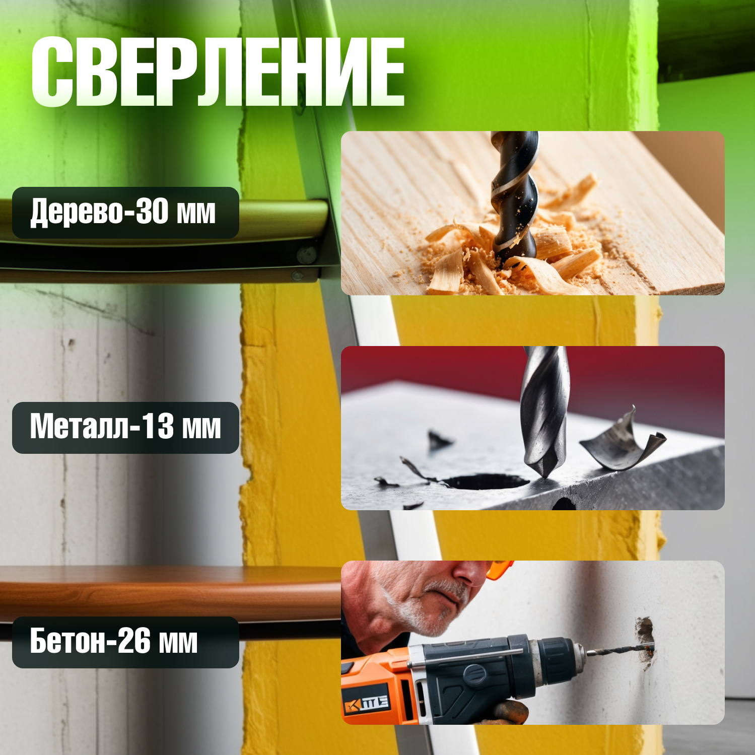 | Макс. диаметр сверления (металл) | 13 мм |