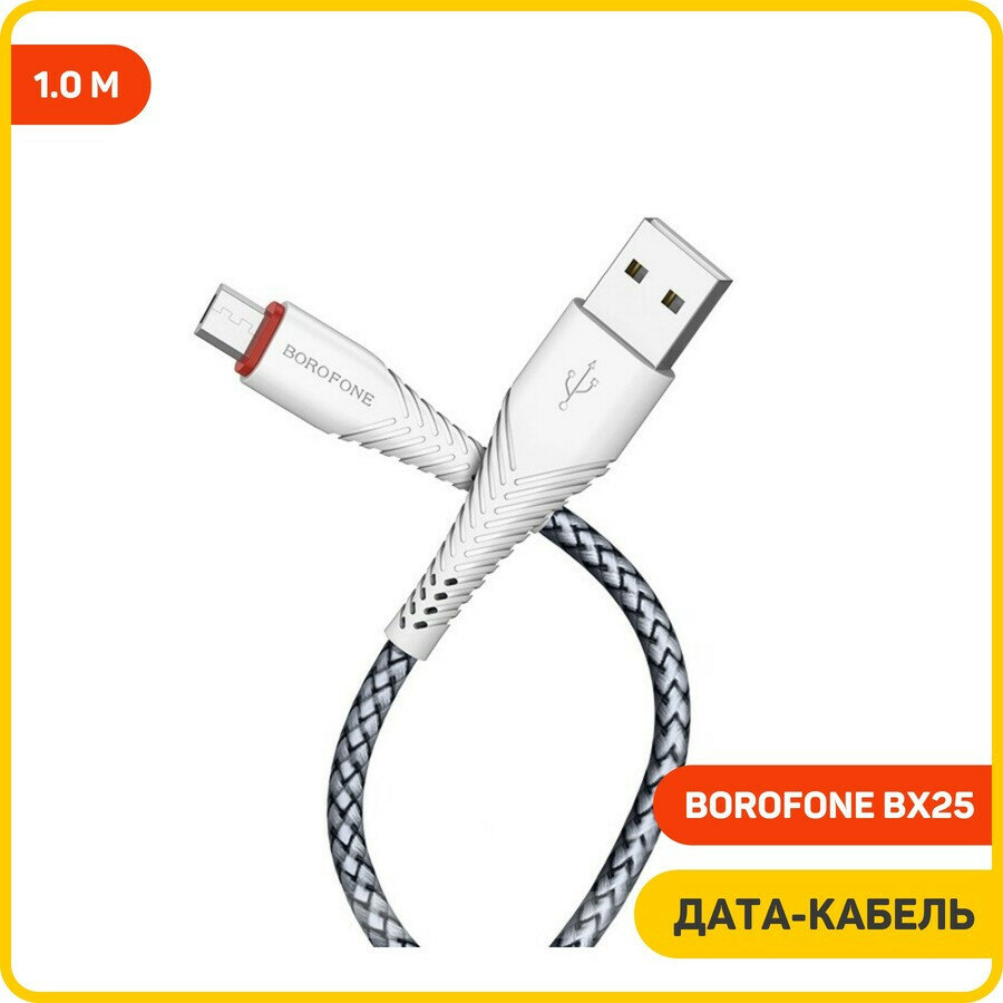 Дата-кабель Borofone BX25 USB-MicroUSB (2.4 А) 1 м, белый