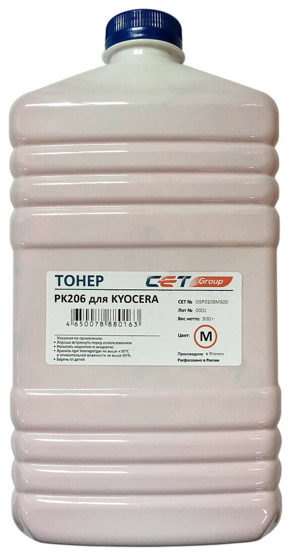 Тонер Cet PK206 OSP0206M-500 пурпурный бутылка 500гр. для принтера Kyocera Ecosys M6030cdn/6035cidn/6530cdn/P6035cdn