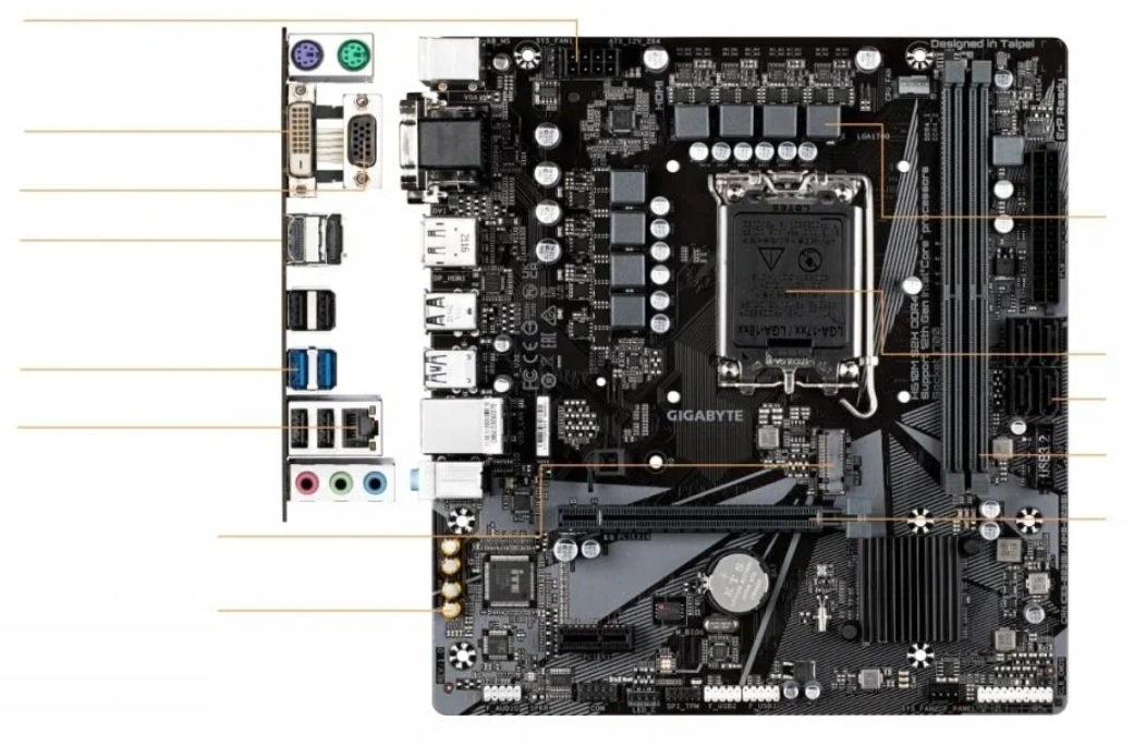 Материнская плата Gigabyte H610M S2H DDR5 (Socket 1700 PCI-E DVI HDMI DP GbLAN MicroATX 2DDR5 M.2)