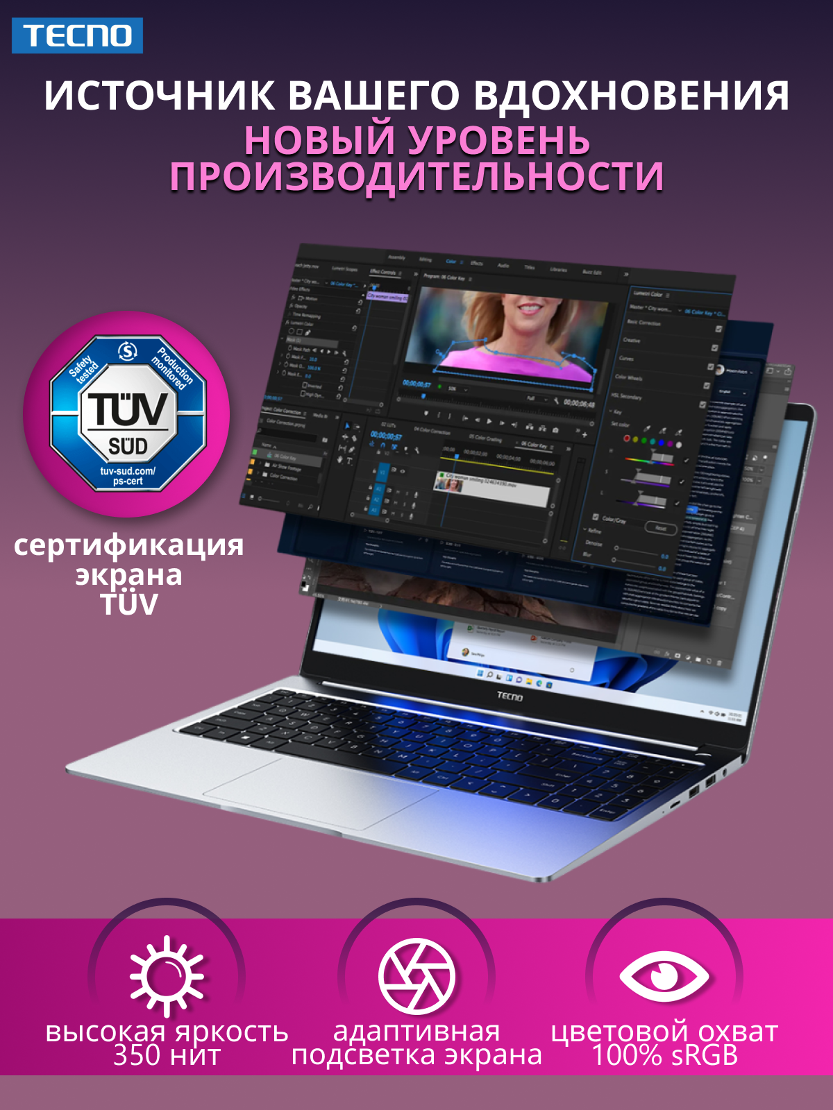СохранитьНоутбук Tecno MegaBook T1/15.6"/Core i5/16/512/Win/Grey интересное: