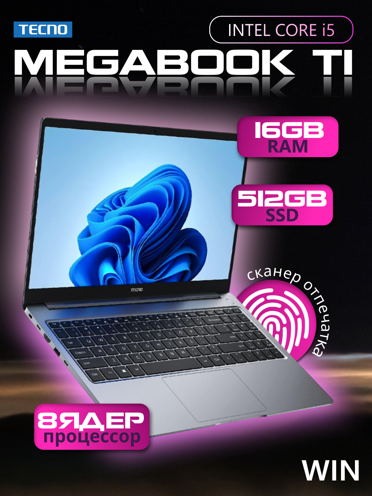 Купить Ноутбук Tecno MegaBook T1/15.6"/Core i5/16/512/Win/Grey