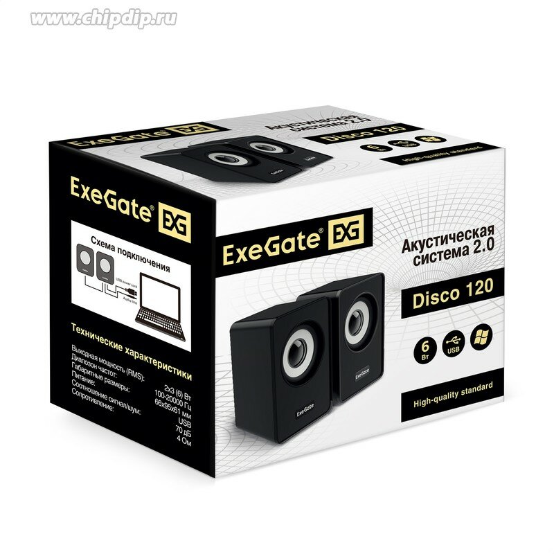 Exegate EX287054RUS Акустическая система 2.0 ExeGate Disco 120 (питание USB, 2х3Вт (6Вт RMS), 100-20000Гц, черный)