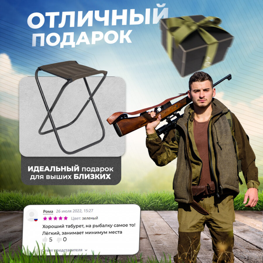 Табурет складной Маяк, стул туристический для рыбалки, хаки, большой