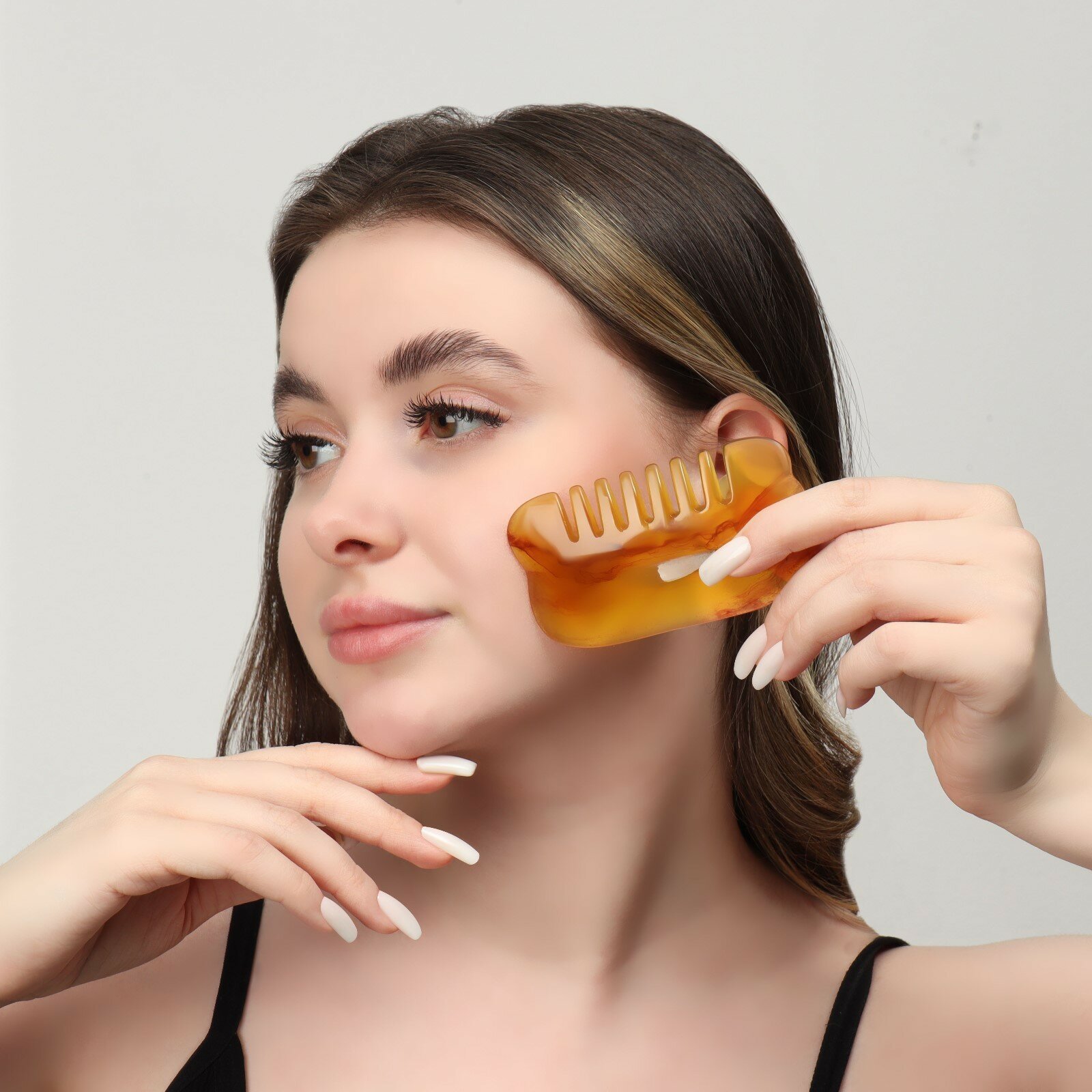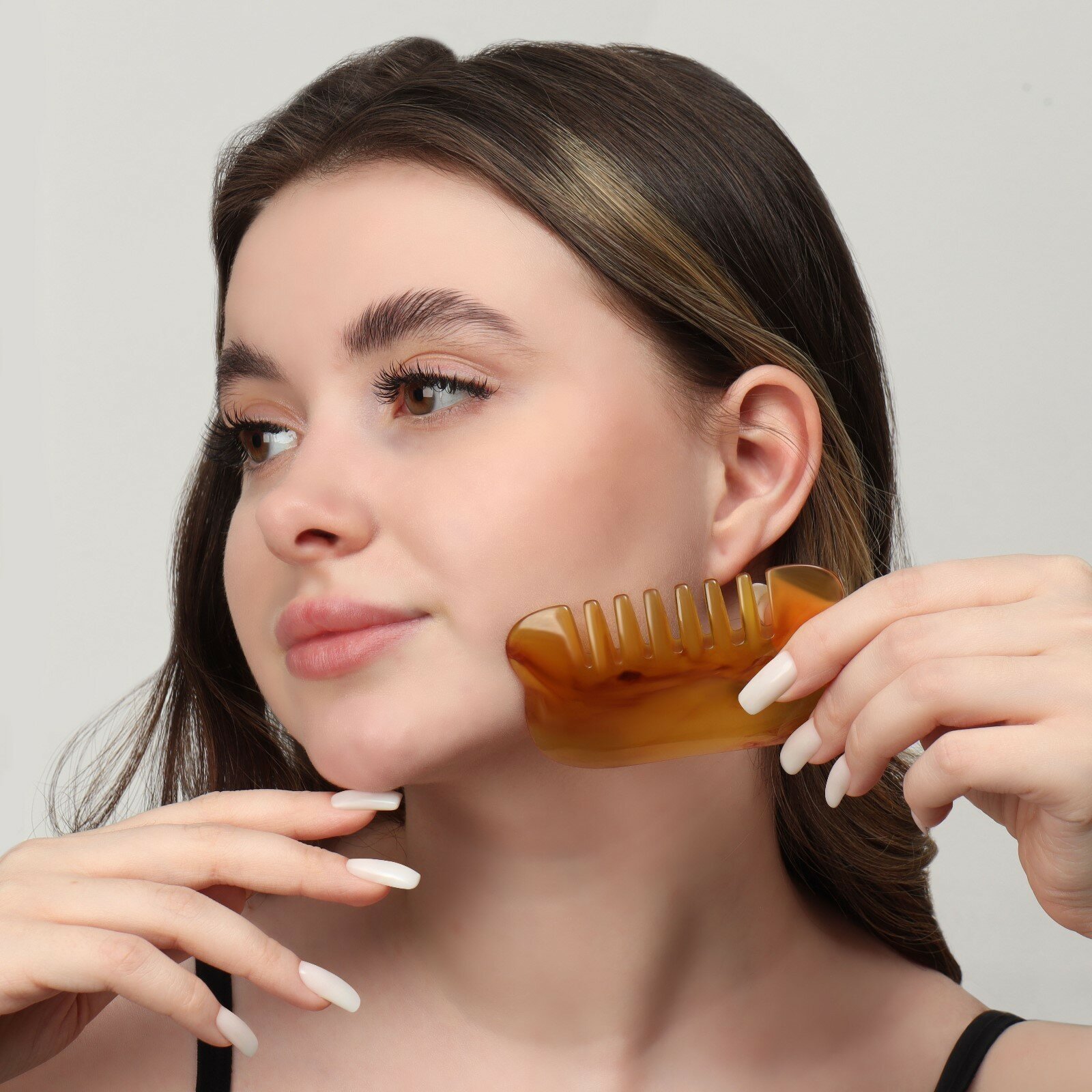 Массажёр смола универс Гуаша Гребень 9,5*5,5см янтарн PVC кор QF 6913926 интересное: