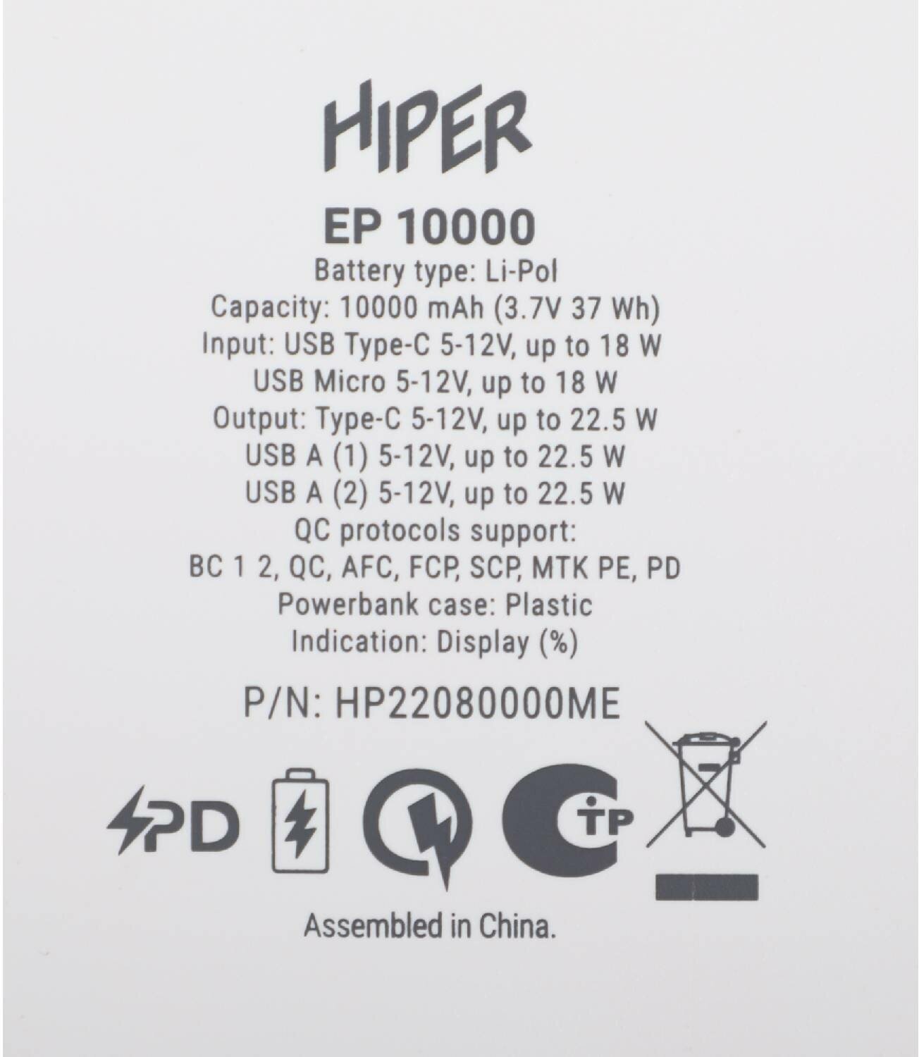 Внешний аккумулятор Hiper EP 10000 10000mAh 3A QC PD белый