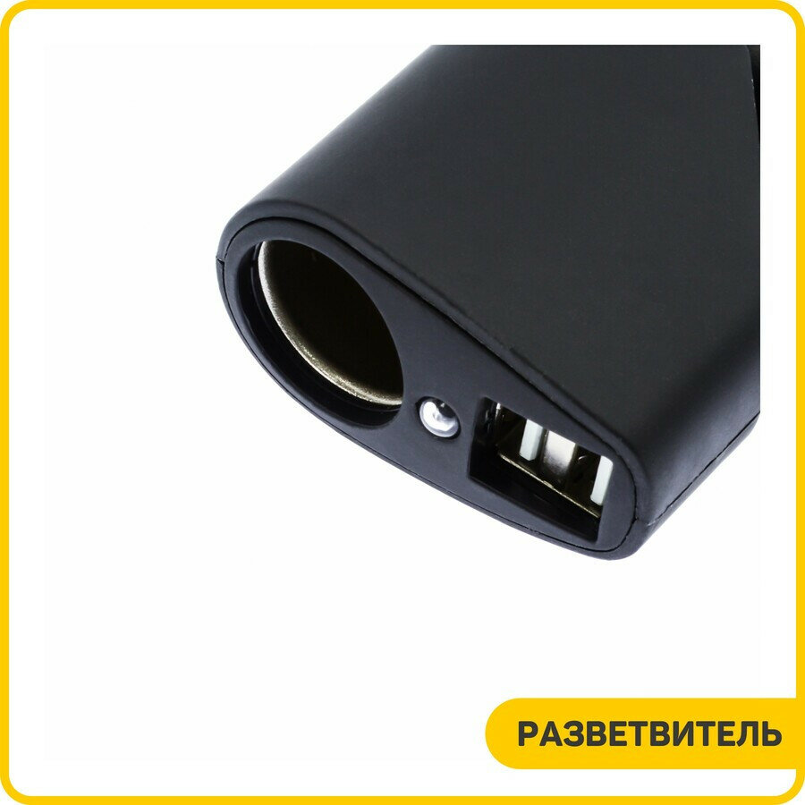 Разветвитель прикуривателя 1351 (1 выход + 2 USB) черный