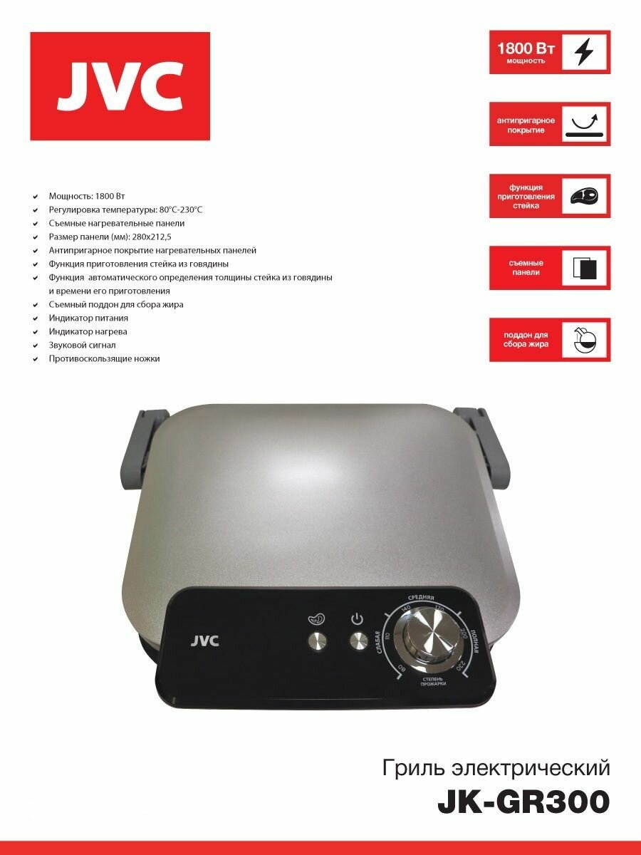 Гриль JVC JK-GR300 (съемные панели, определение толщины и времени жарки стейка