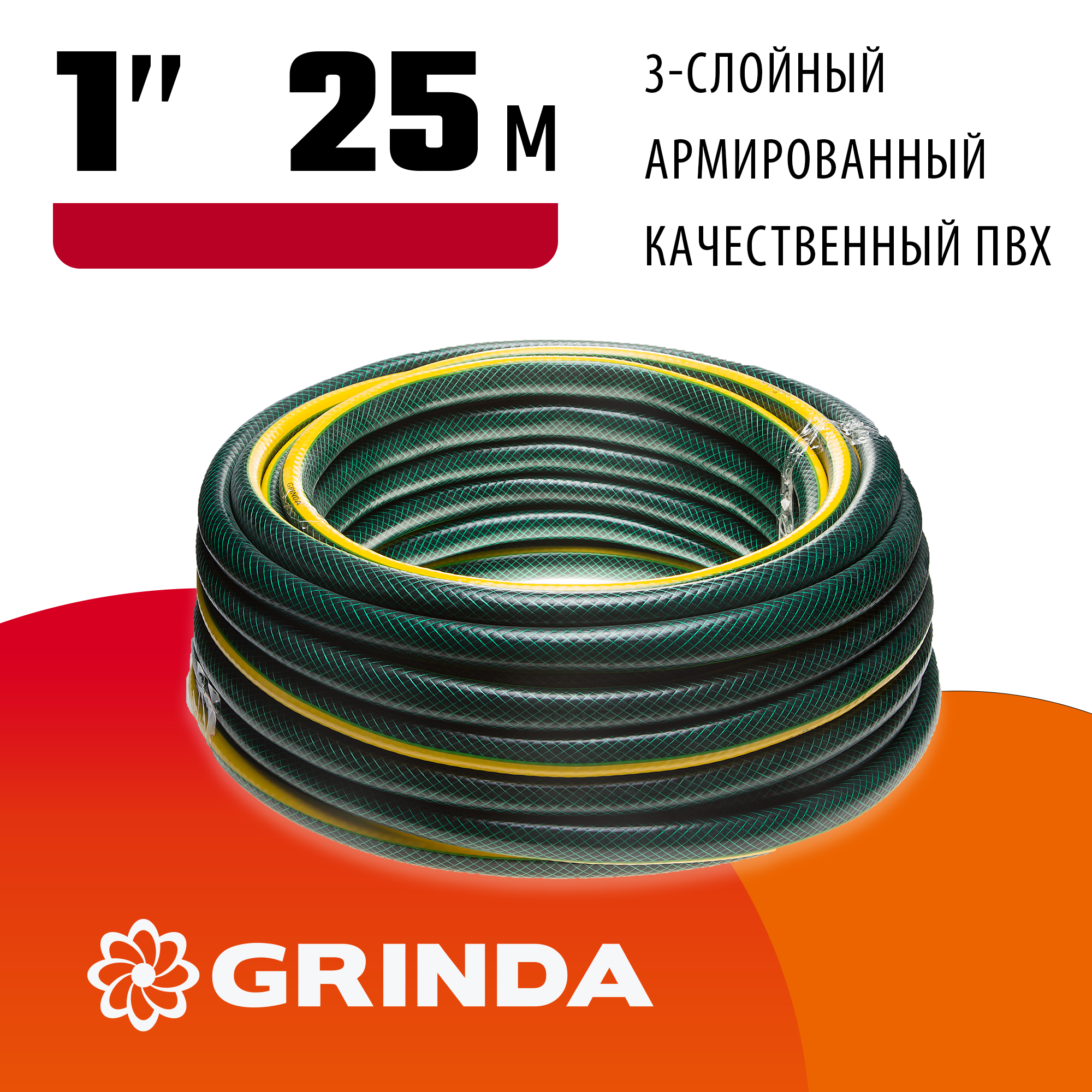 GRINDA STANDARD 1″ 25 м, 10 атм, трёхслойный, армированный, Поливочный шланг (429000-1-25)