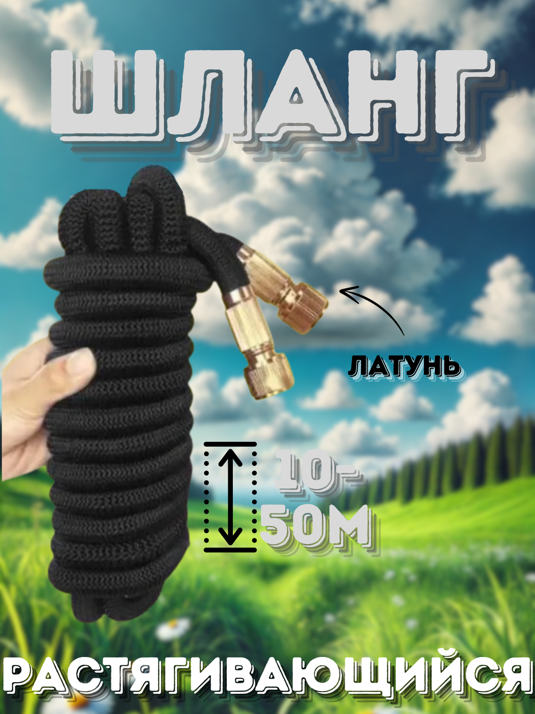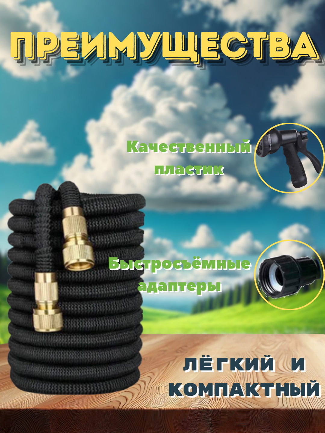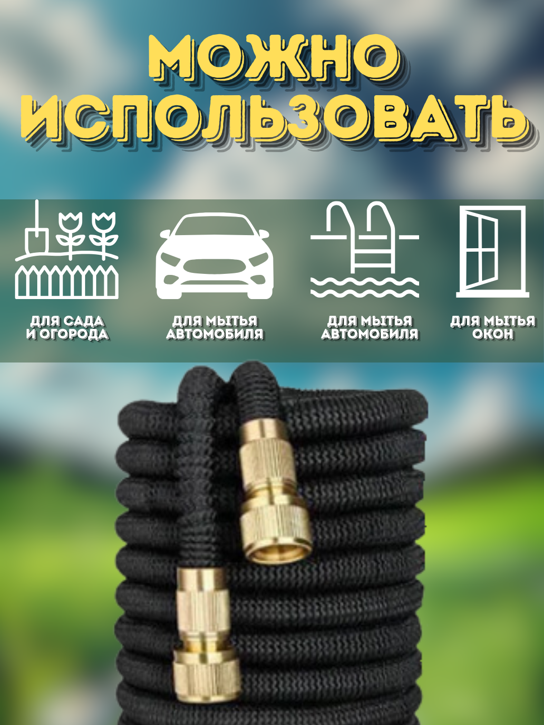 Шланг поливочный удлиняющийся с распылителем - 10-50 метров, черный интересное: