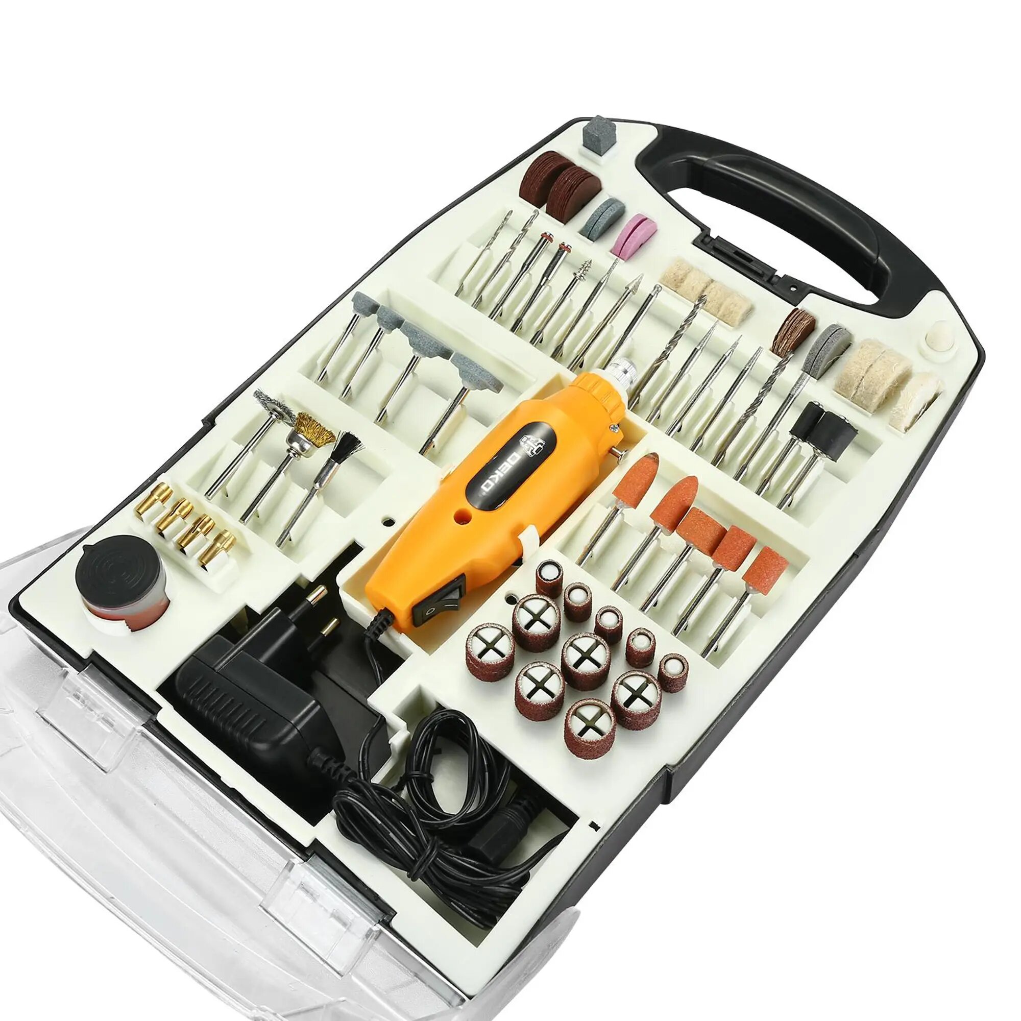 Купить Электрический гравер Deko Dkrt150, 150 Вт, в кейсе + набор аксессуаров 110 шт 063-1417 .