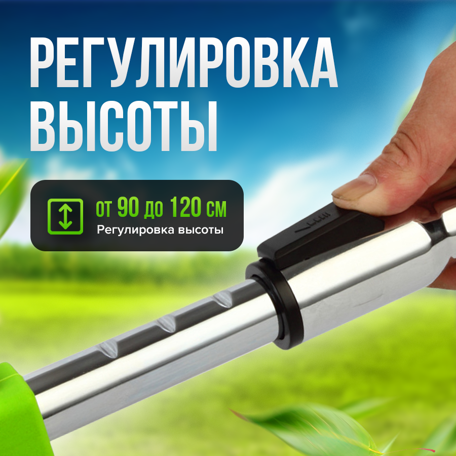 | Плюсы: | Легкий, телескопическая трубка, можно регулировать длину, металлические лезвия |