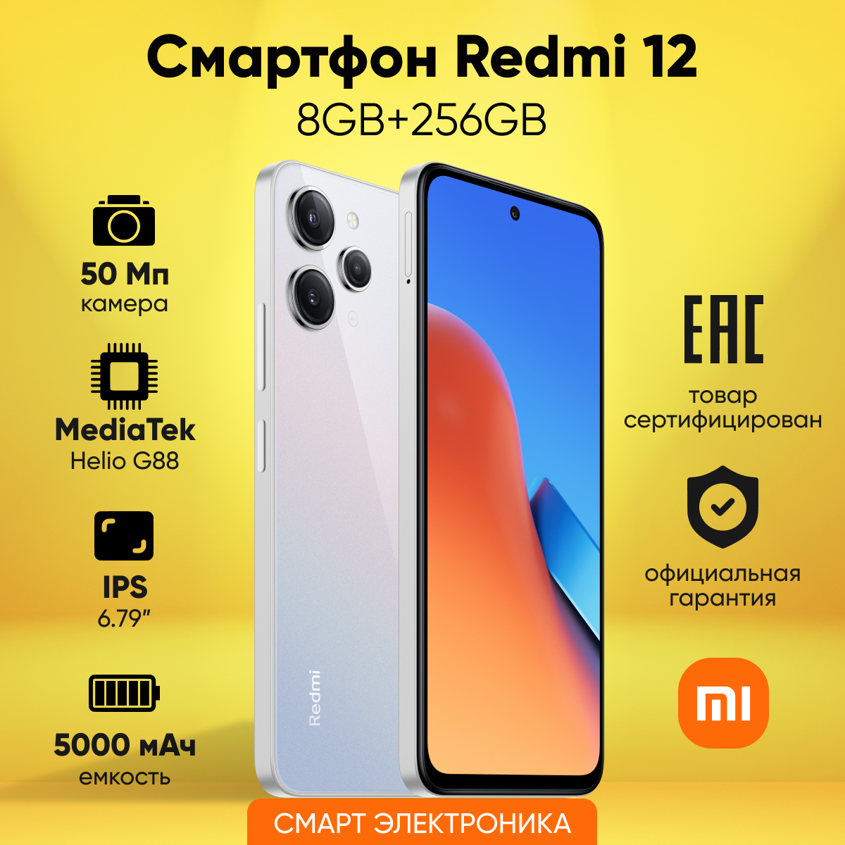 Купить Смартфон Xiaomi Redmi 12 8/256 ГБ RU, Dual nano SIM, серебристый лед