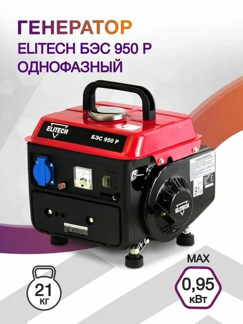 Бензиновый генератор ELITECH БЭС 950 Р, (950 Вт)