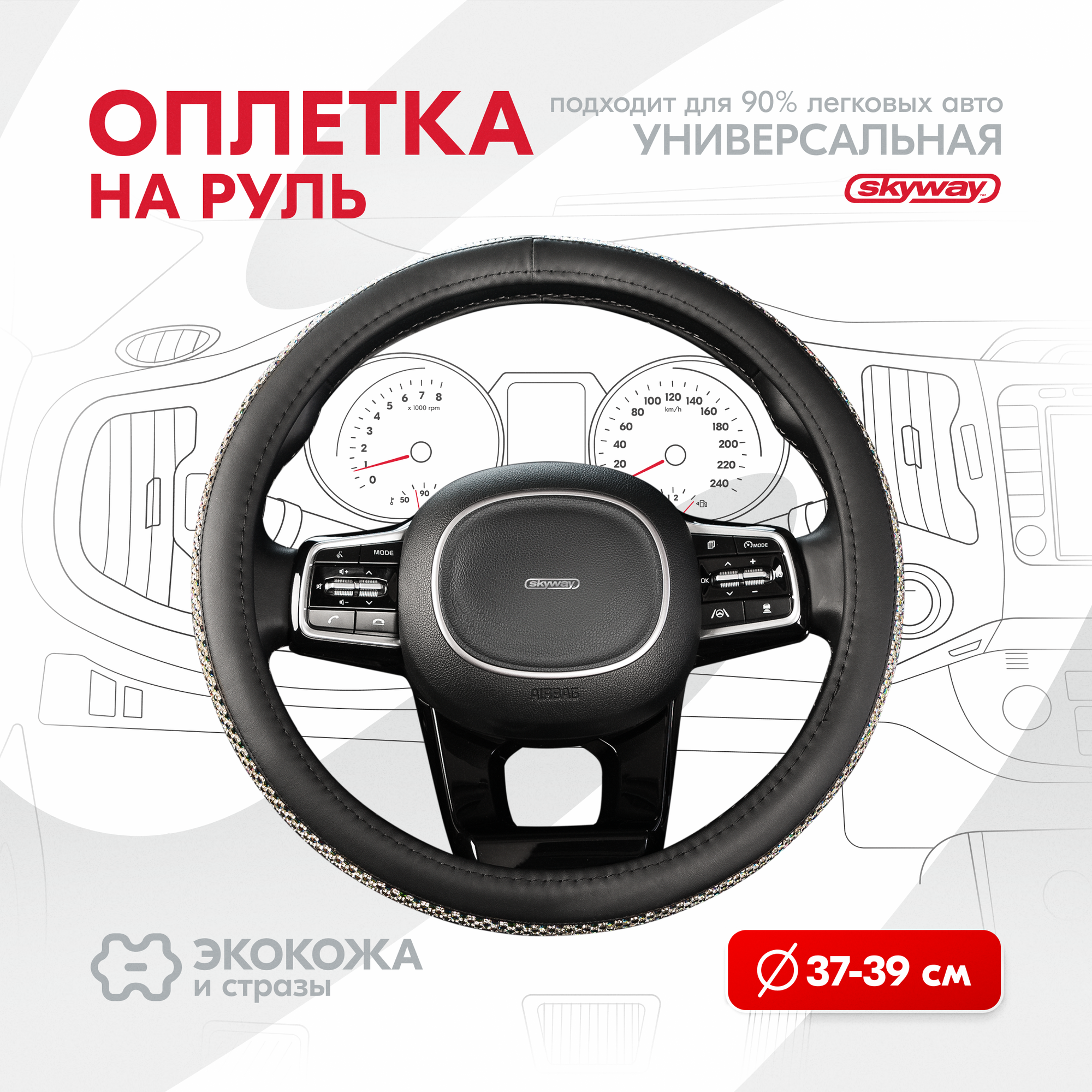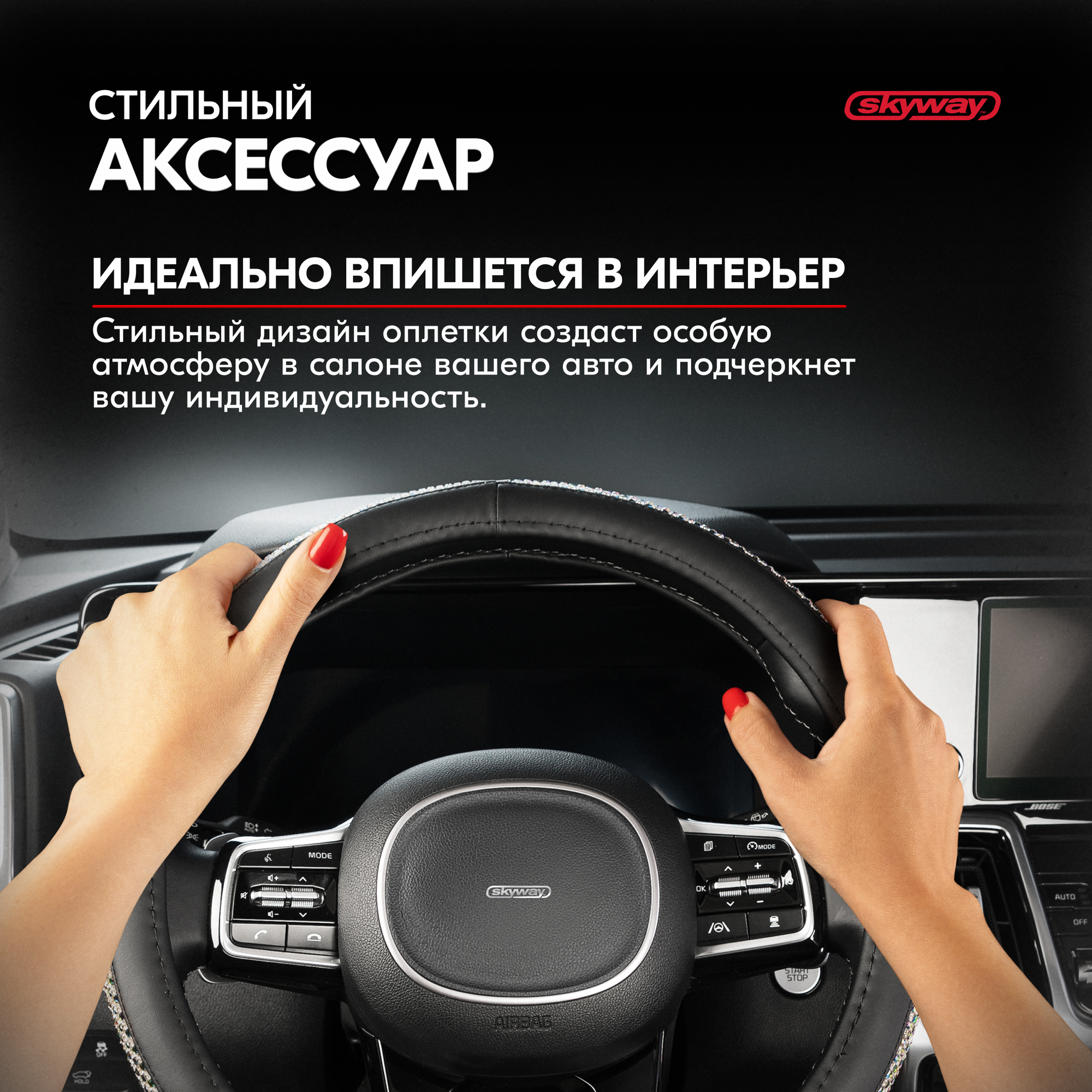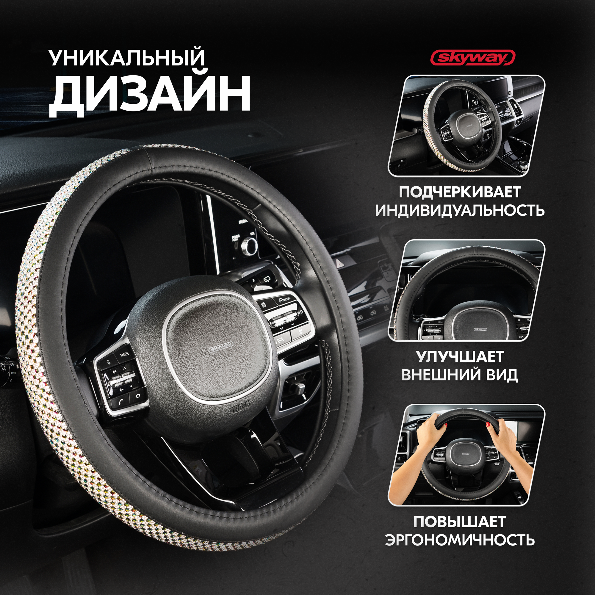 Оплетка SKYWAY Crystal-1 для руля диаметром 37/38/39см, экокожа, размер M, со стразами, S01102463
