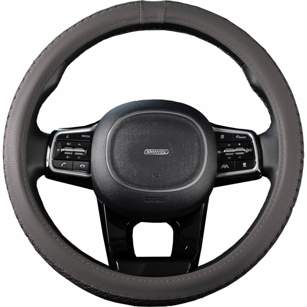 Оплетка на руль Top-12 SKYWAY M (37-39) серый экокожа, S01102501