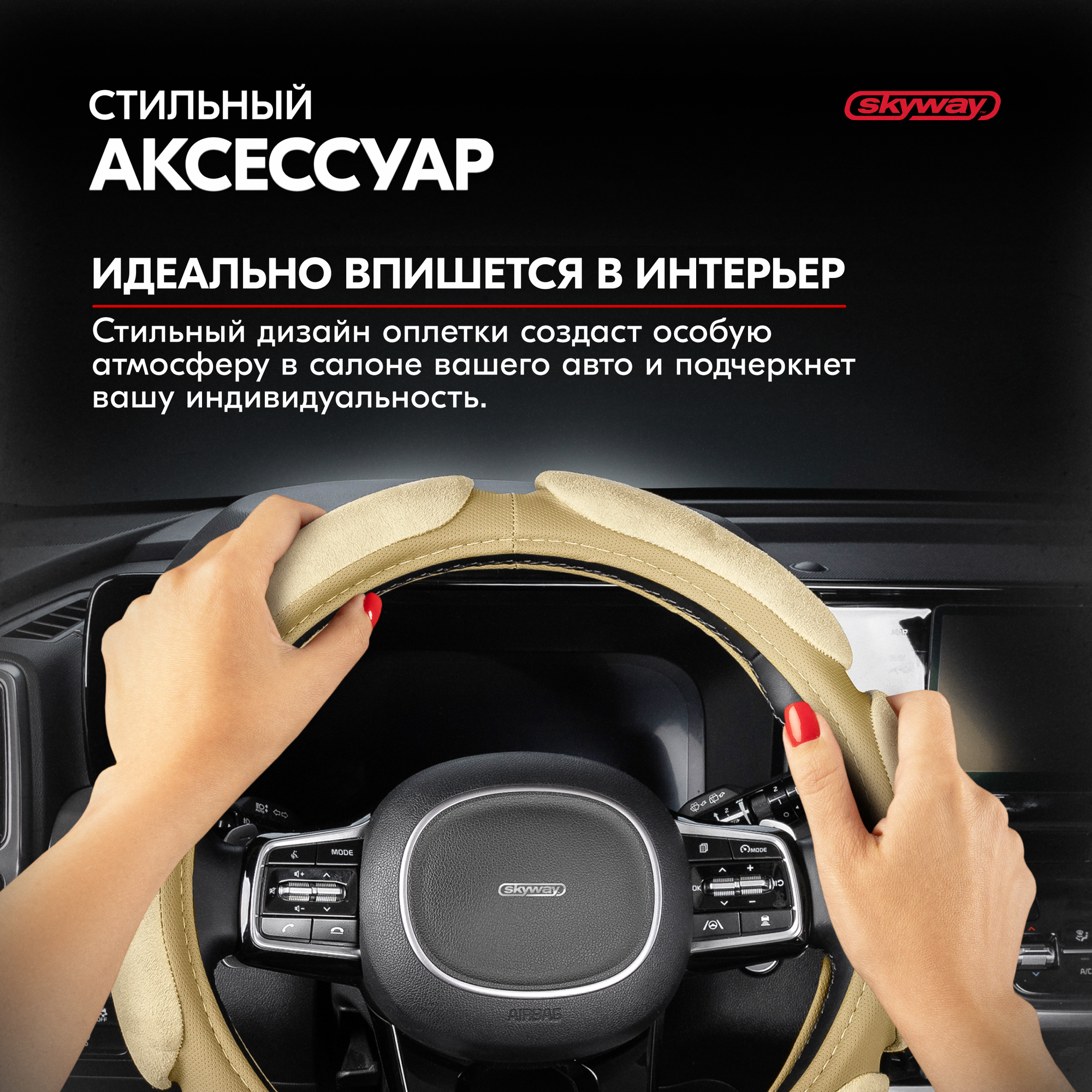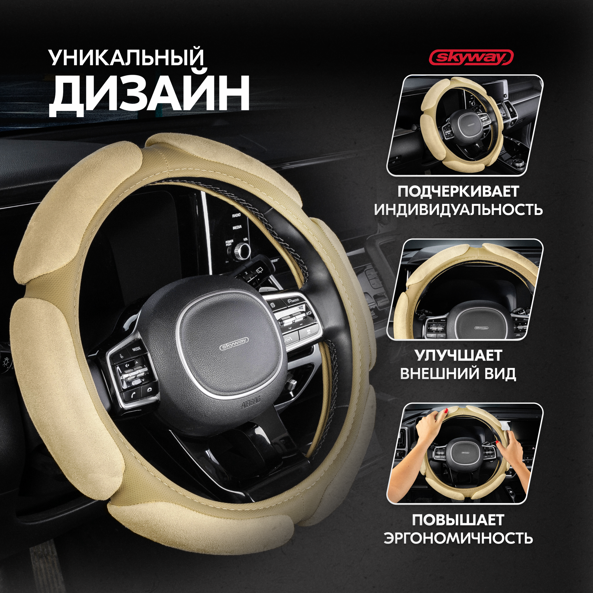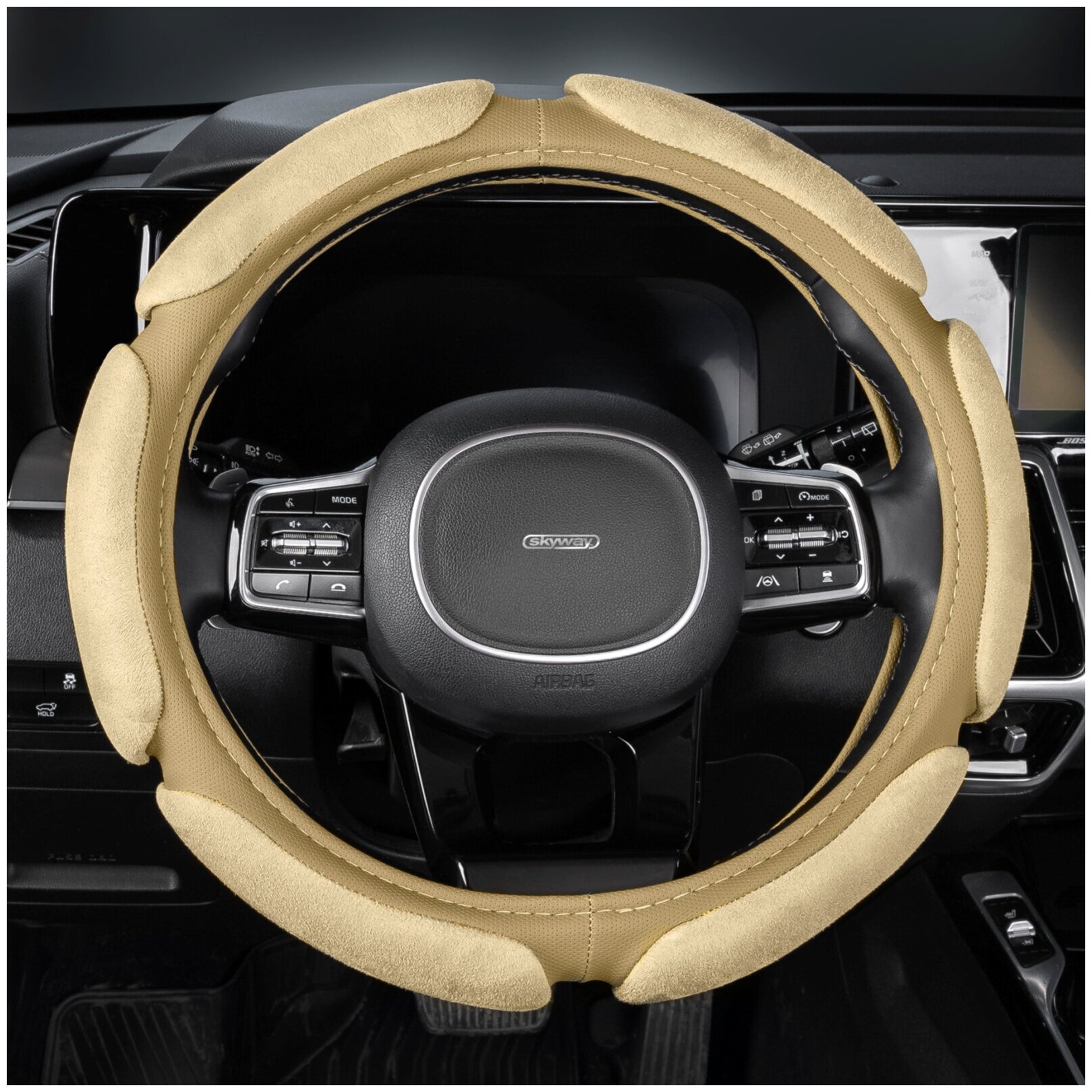 Оплётка руля SKYWAY замша 6 подушечек Бежевая ECO (М)