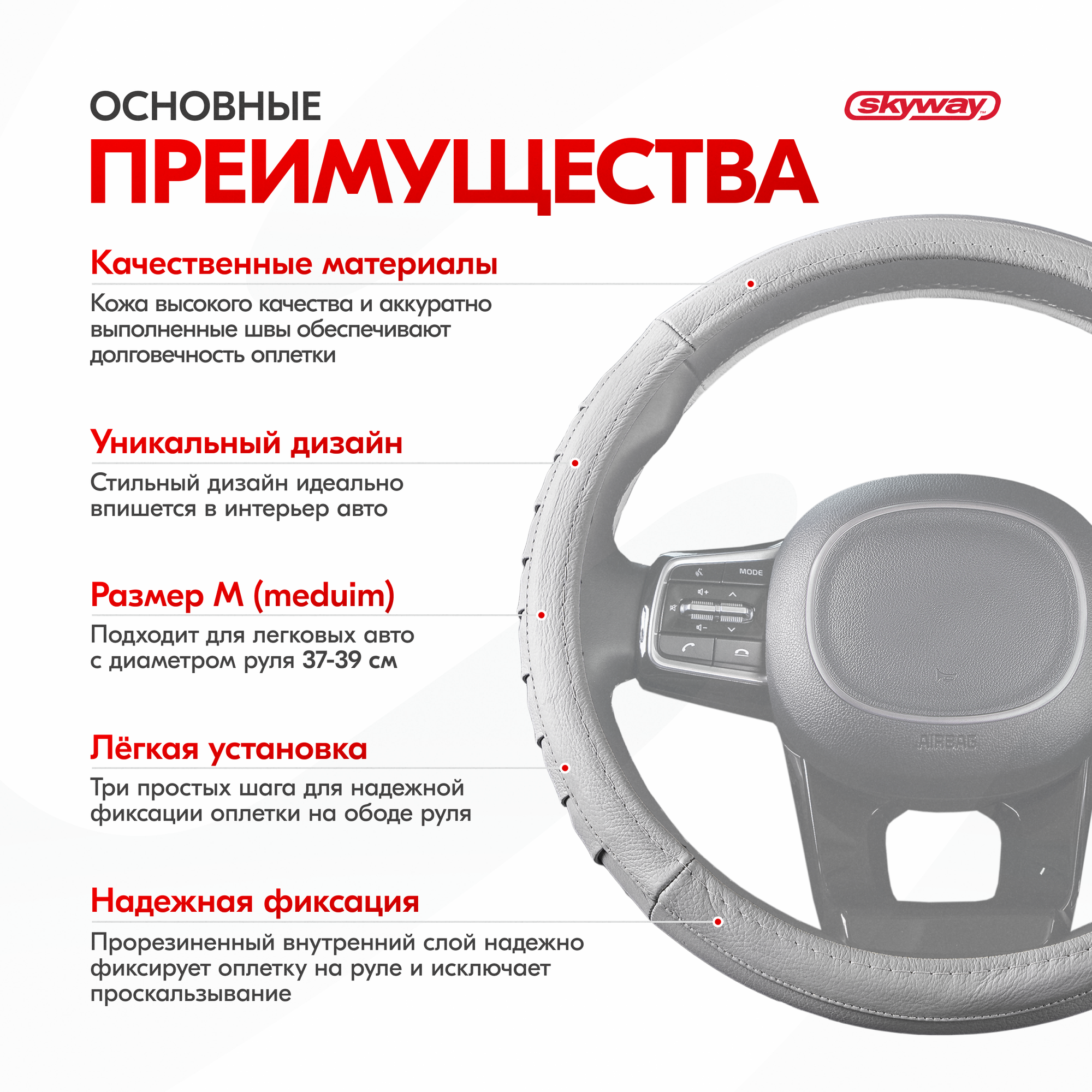 СохранитьОплетка на руль Real-5 SKYWAY M (37/38/39 см) серый кожа, S01108009 интересное: