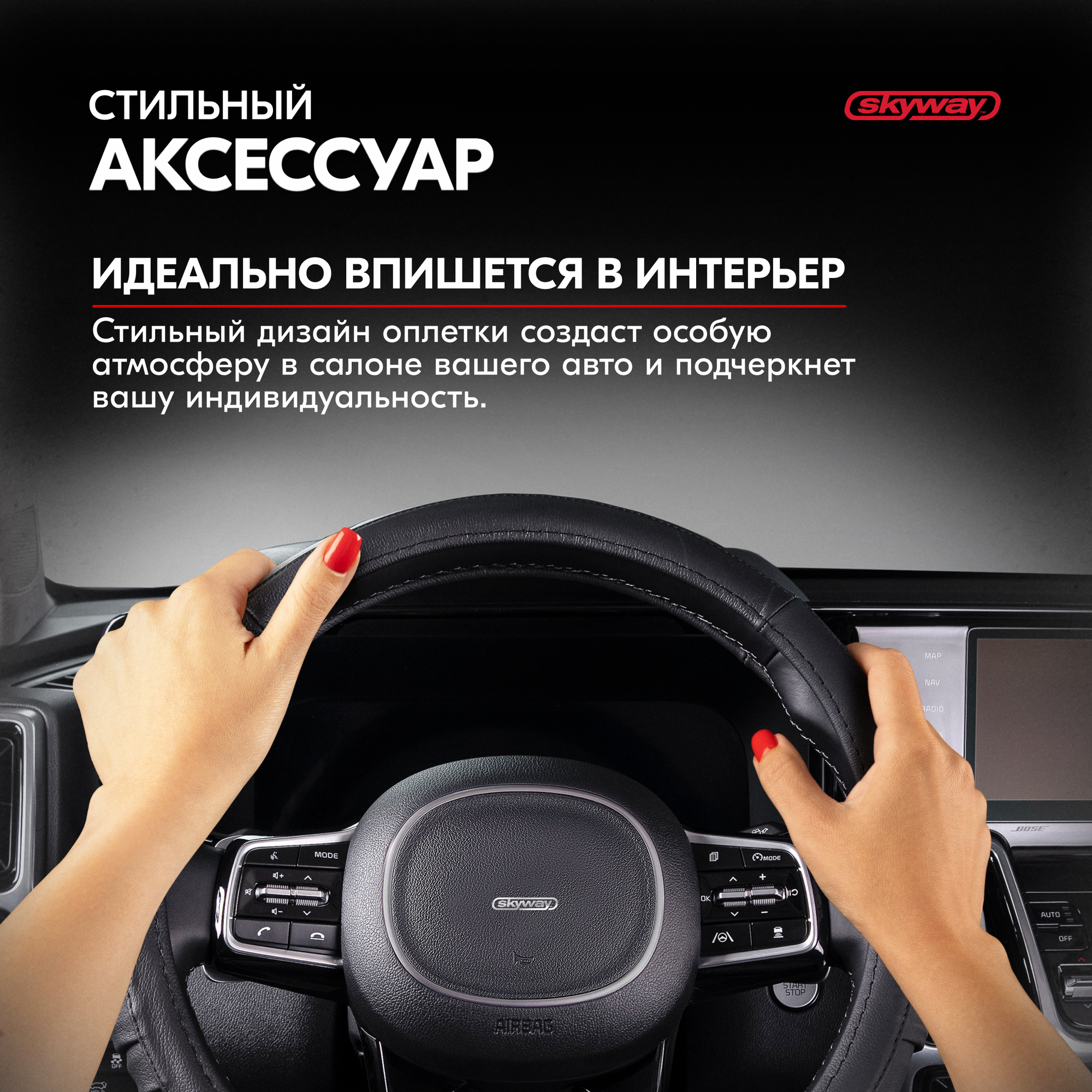 Оплетка на руль M "SKYWAY" Real-5 натуральная кожа, черный SKYWAY S01108008 | цена за 1 шт