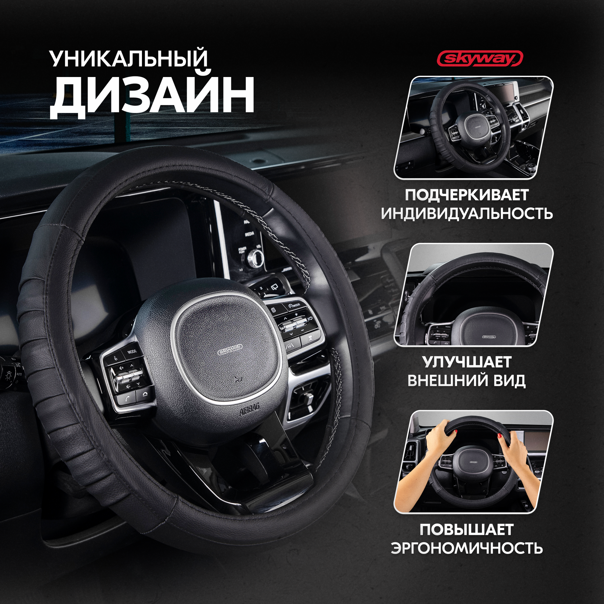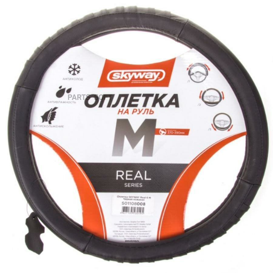 Оплетка на руль Real-5 SKYWAY M (37-39) черный кожа, S01108008