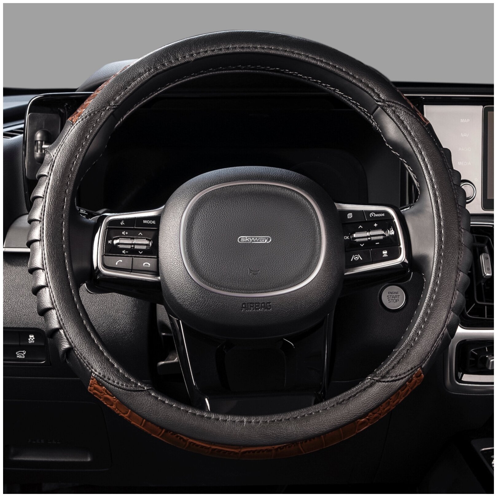 Купить Оплетка руля M 37-38 см экокожа черная Wood-5 SKYWAY S01102171