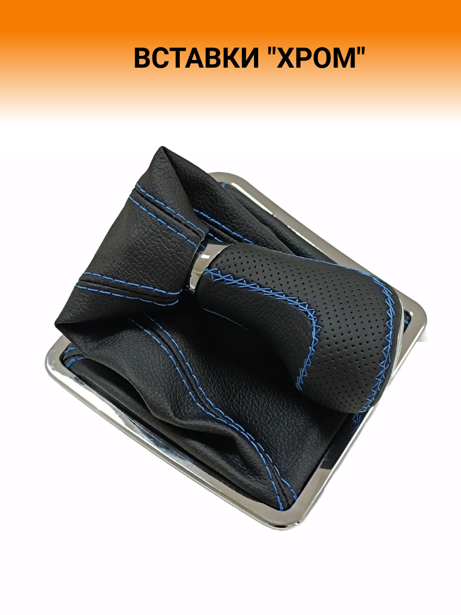 Купить Ручка КПП с чехлом в стиле Весты на ВАЗ-2170 Лада Приора 1 (Lada Priora 1) с Приора кулисой, черный с синей строчкой "рамка хром"