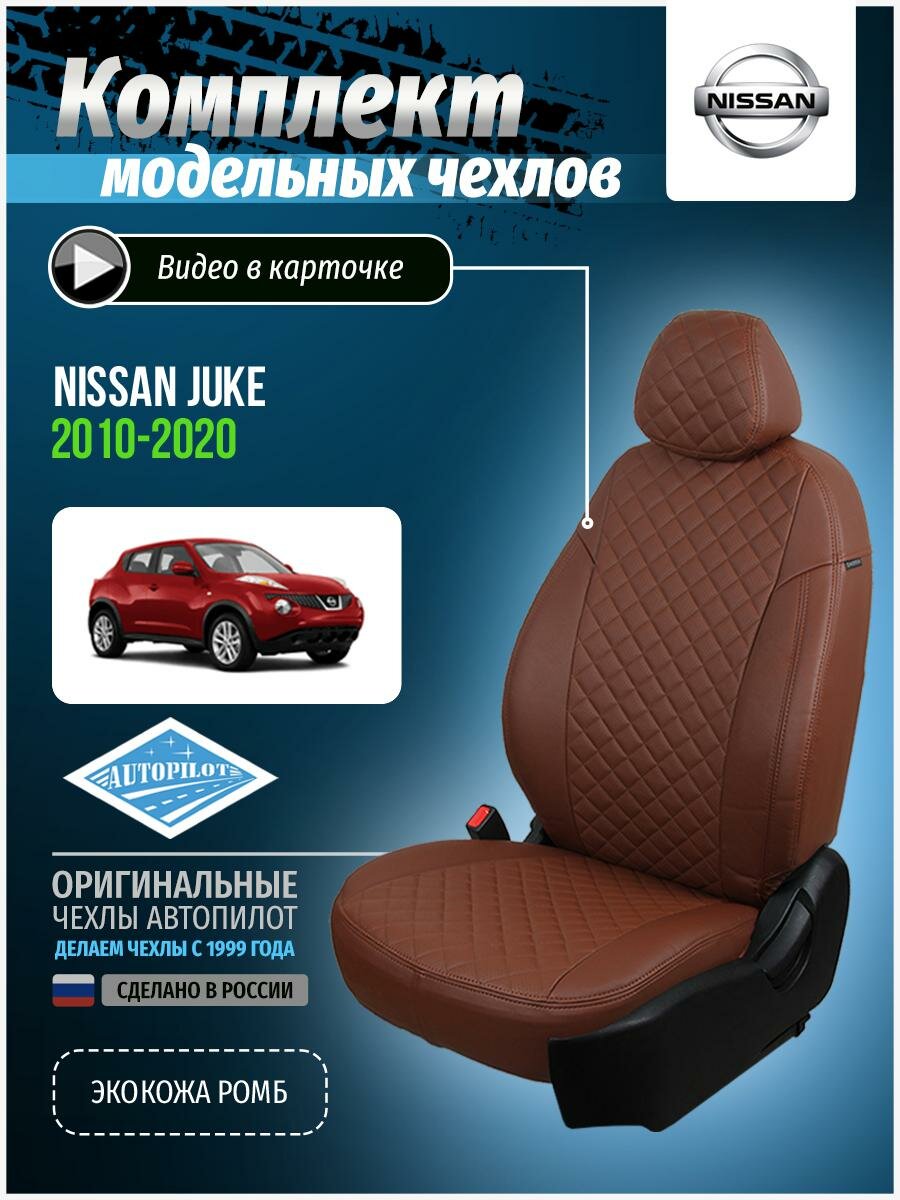 Чехлы на сиденья Nissan Juke (2010-2019), Экокожа, шоколадный, Автопилот, ni-zhk-zh10-shosho-e