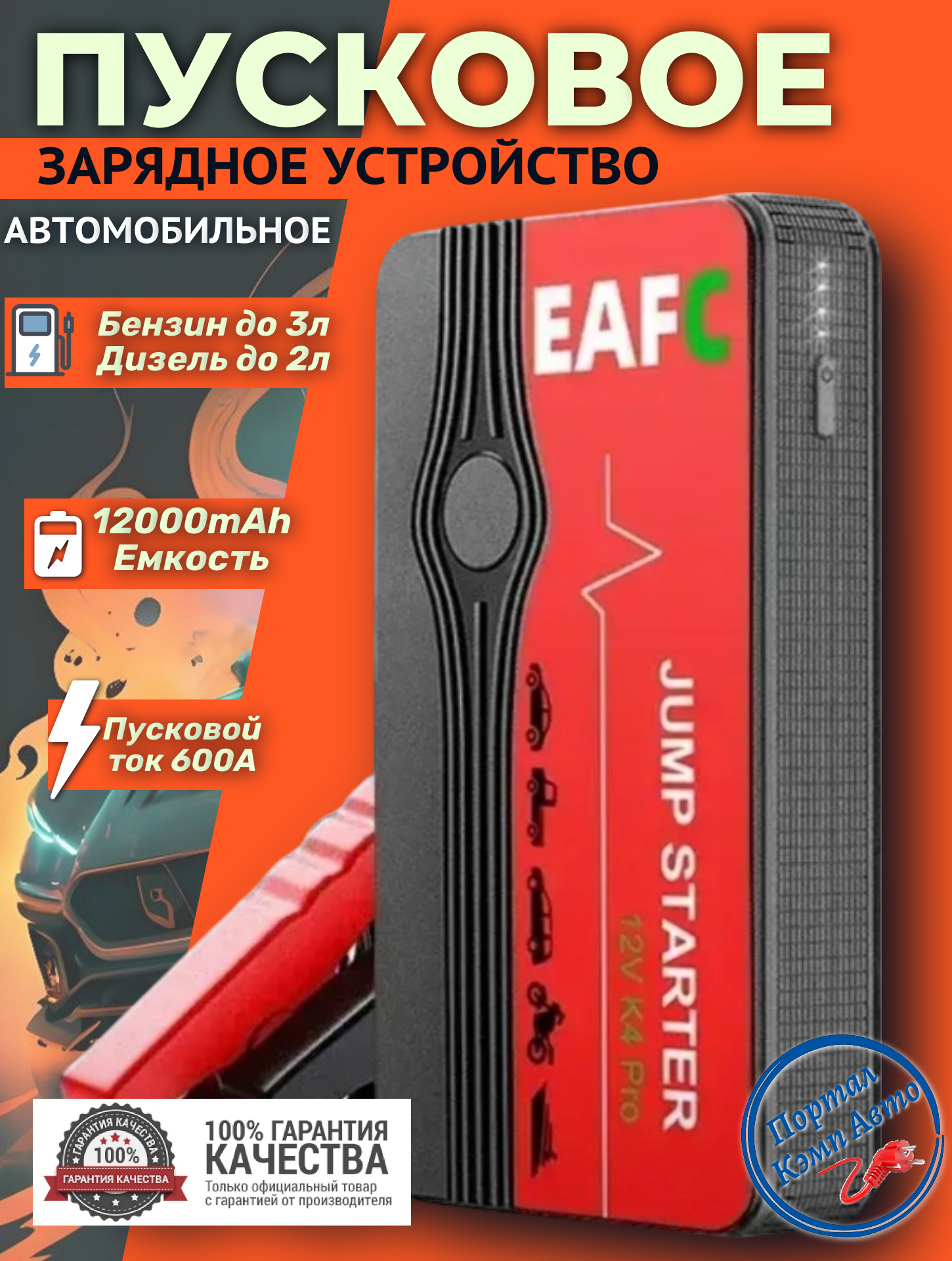 СохранитьАвтомобильное пусковое портативное устройство бустер EAFC 12000mAh 600A . интересное: