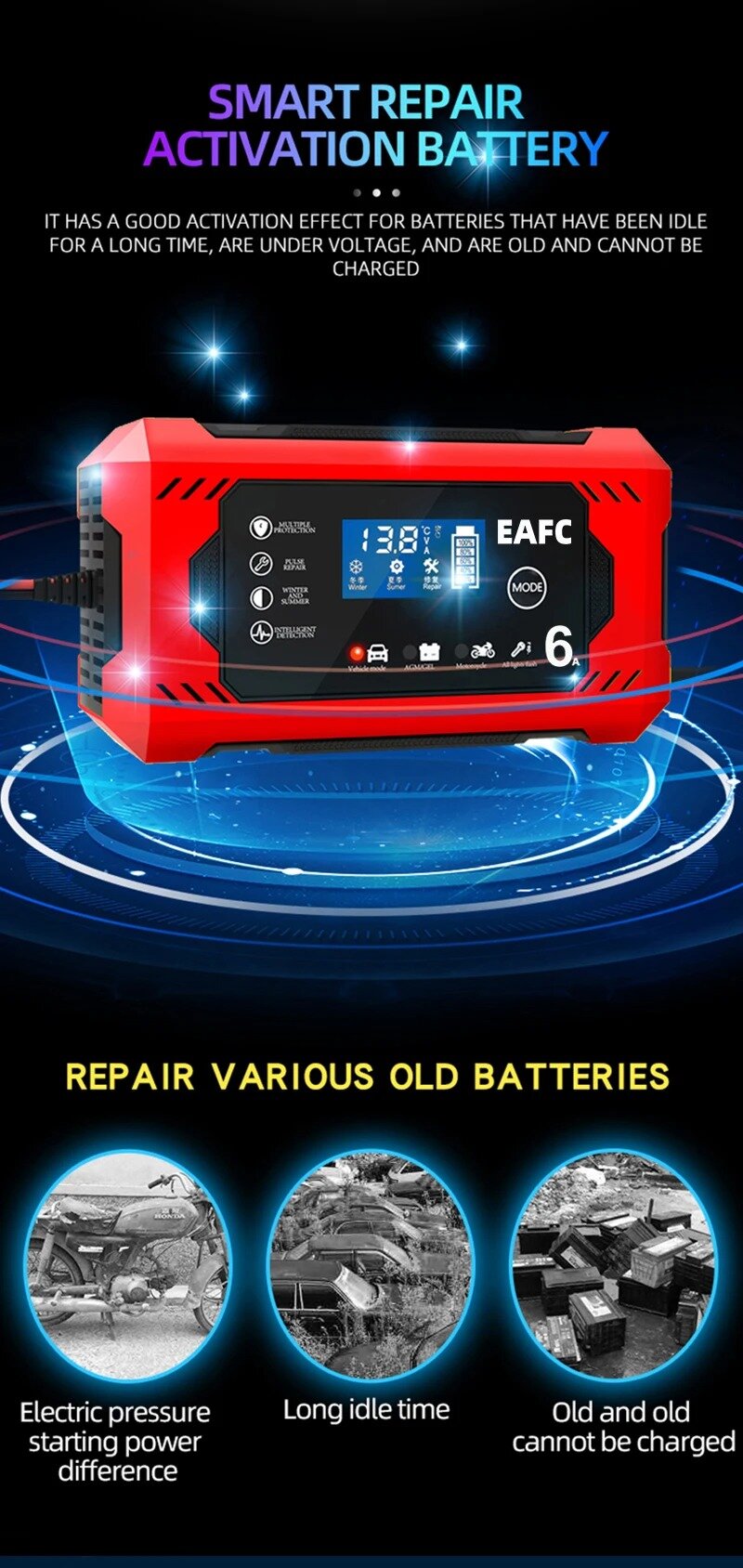 Купить Зарядное устройство EAFC для аккумуляторов 12 В/6 А, ЖК-дисплей, быстрая зарядка автомобиля, мотоцикла, AGM Deep cycle GEL