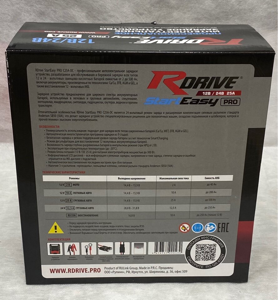 Зарядное устройство Rdrive C25A-DC 12в-24в интересное: