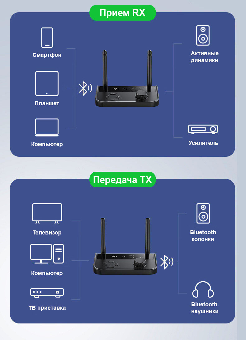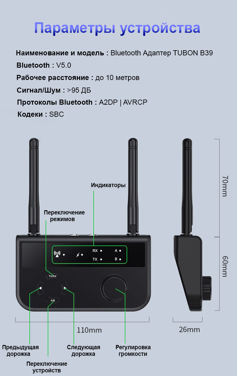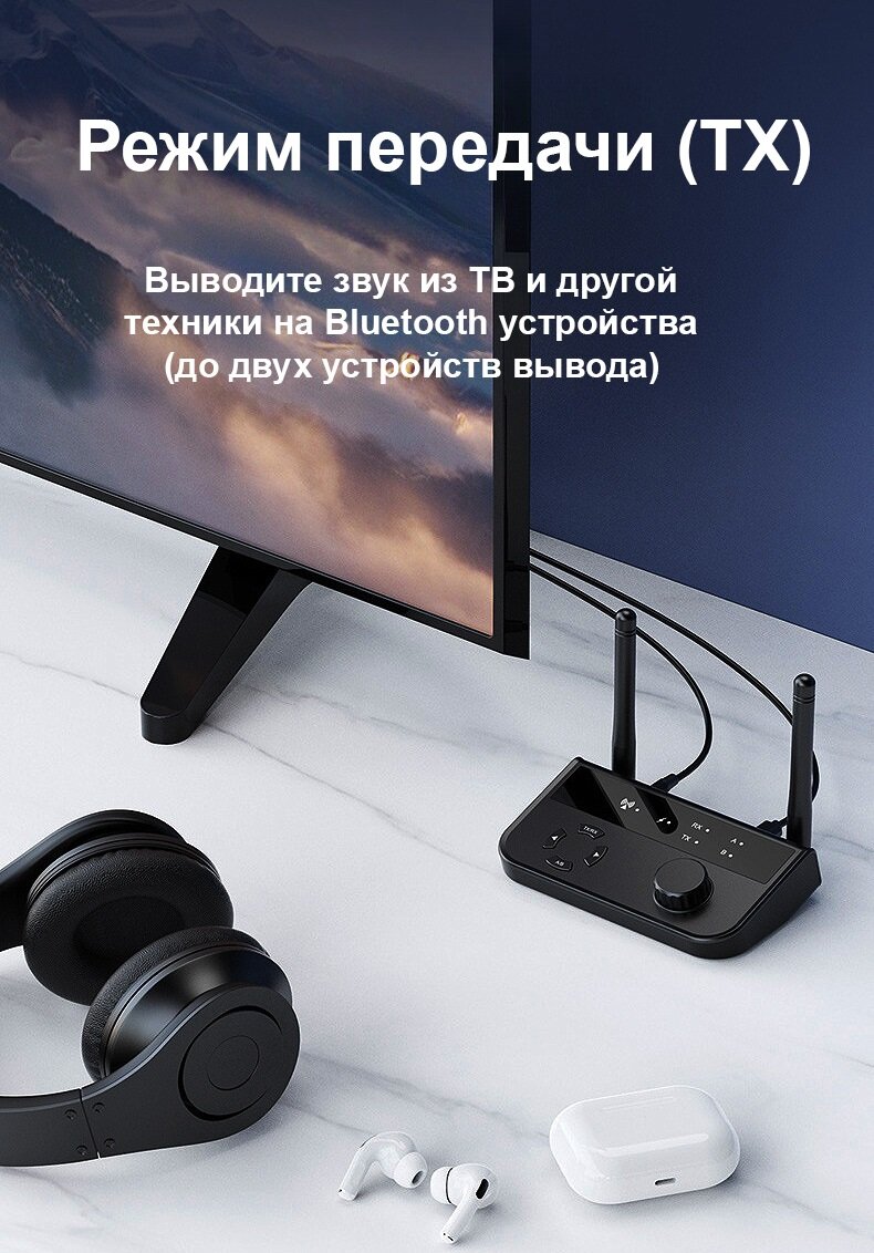 Адаптер Bluetooth Трансмиттер / Ресивер (Приемник / Передатчик аудио) AUX, RCA. B39 для двух наушников интересное: