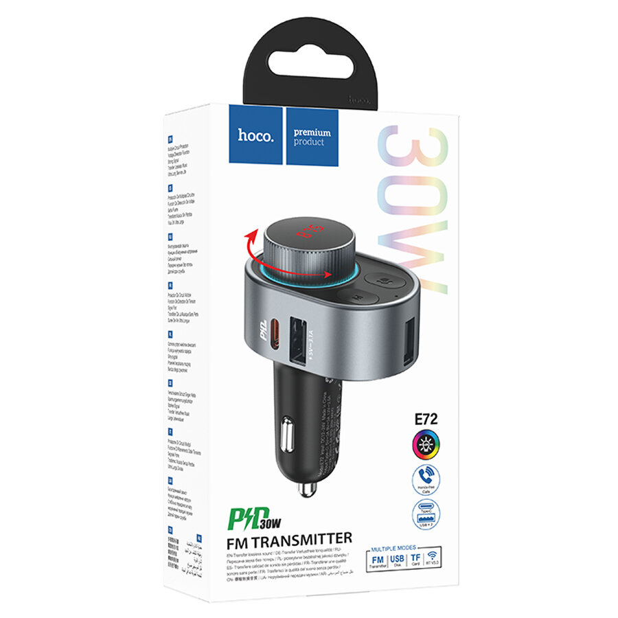 Автомобильное зарядное устройство HOCO E72 30W, Bluetooth, FM Трансмиттер, серый