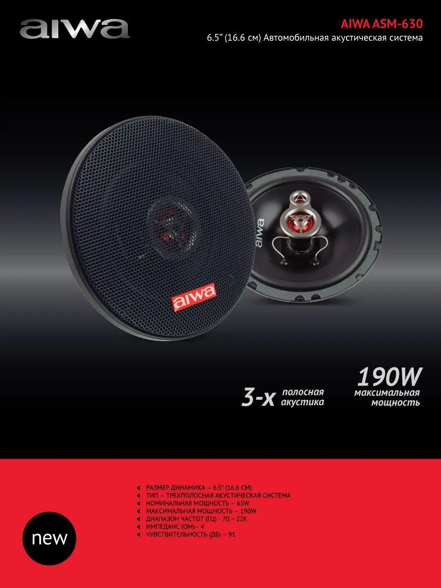 Автомобильная акустика AIWA ASM-630 190 Вт, 17 см, черный интересное:
