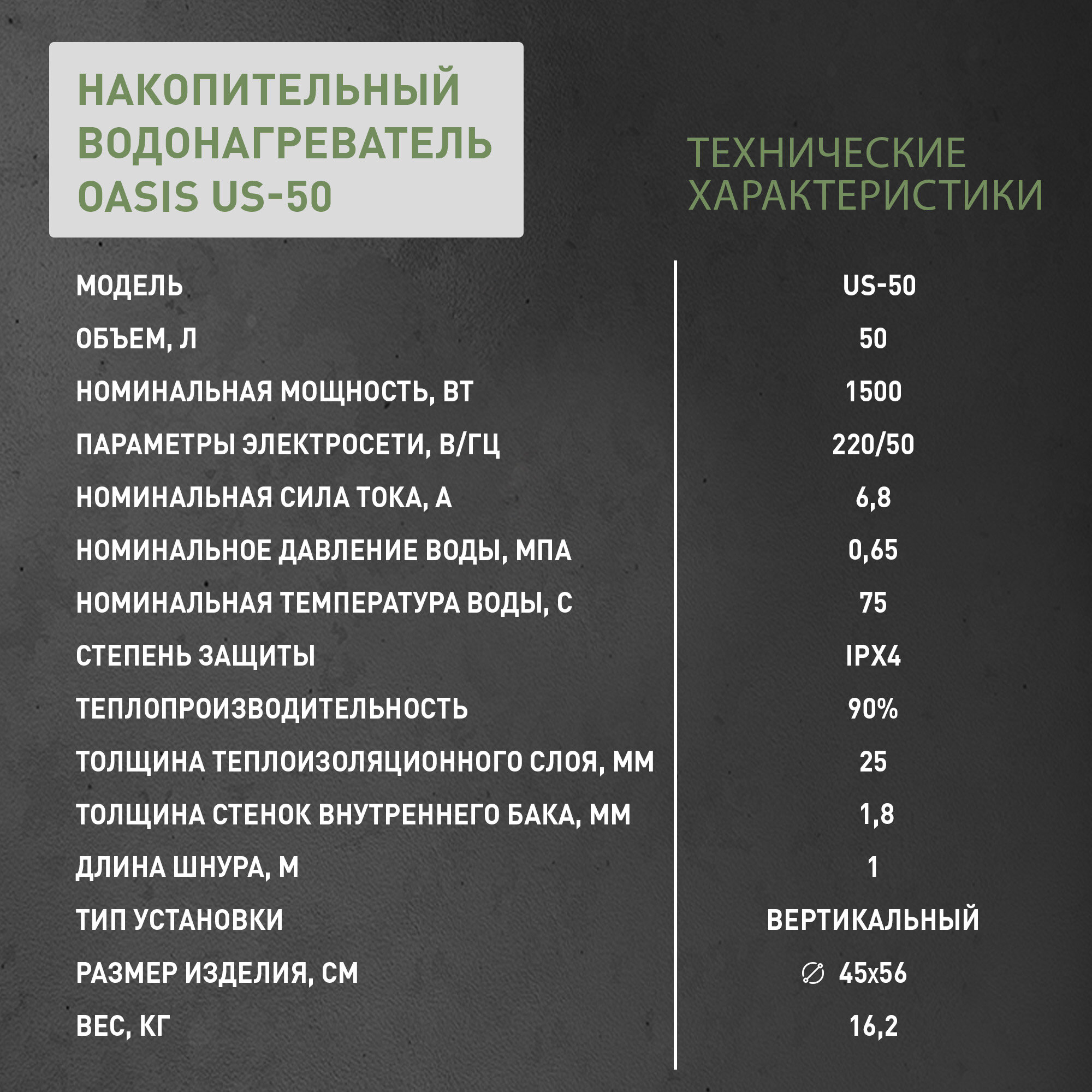Водонагреватель накопительный Oasis US-50