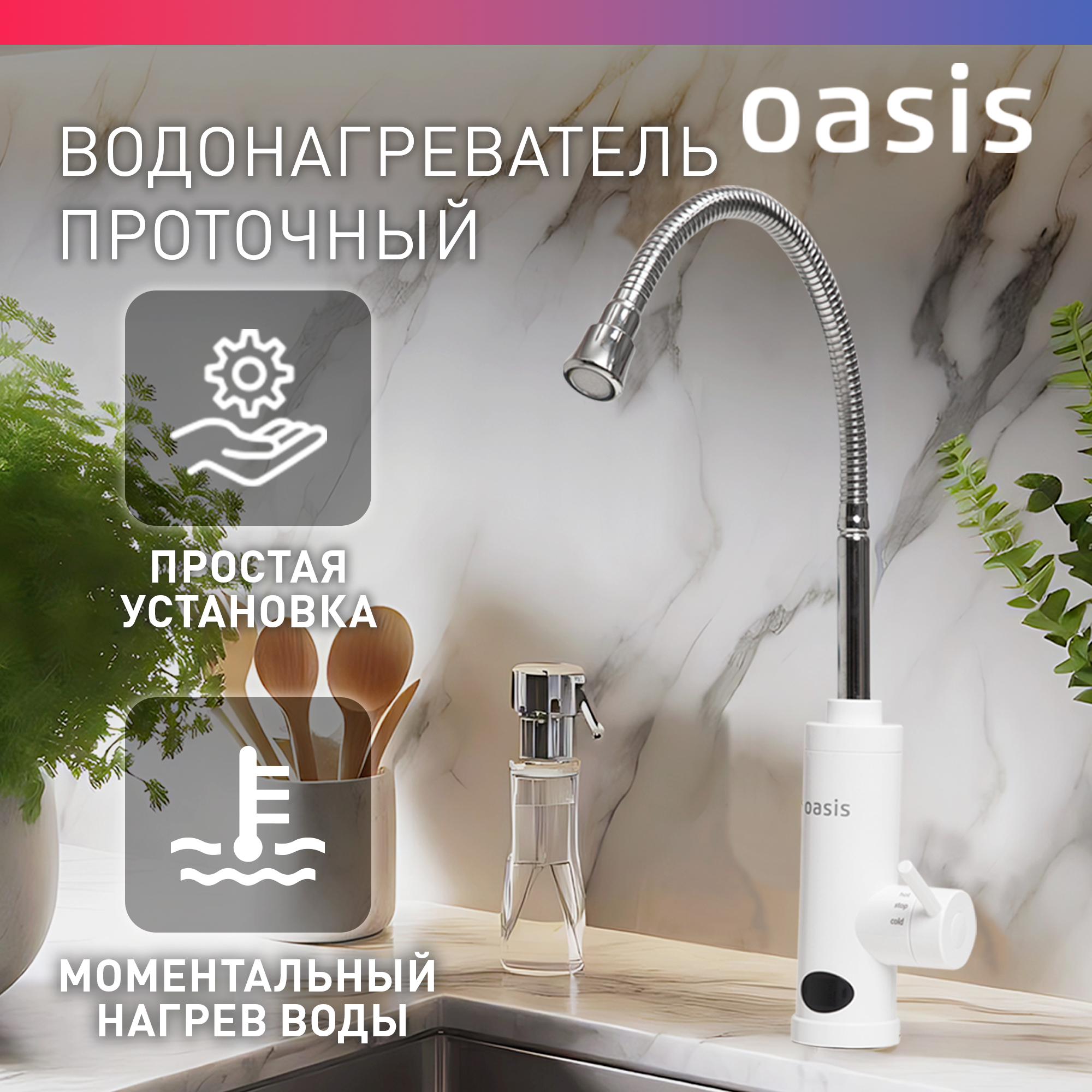 Купить Проточный водонагреватель электрический кран Oasis GP-W, кран для кухни с гибким изливом, для дачи