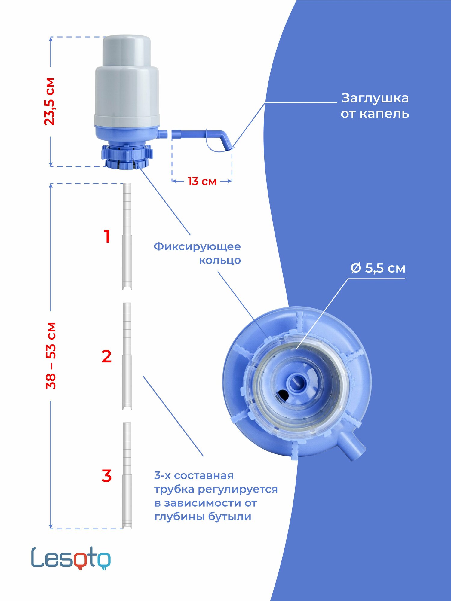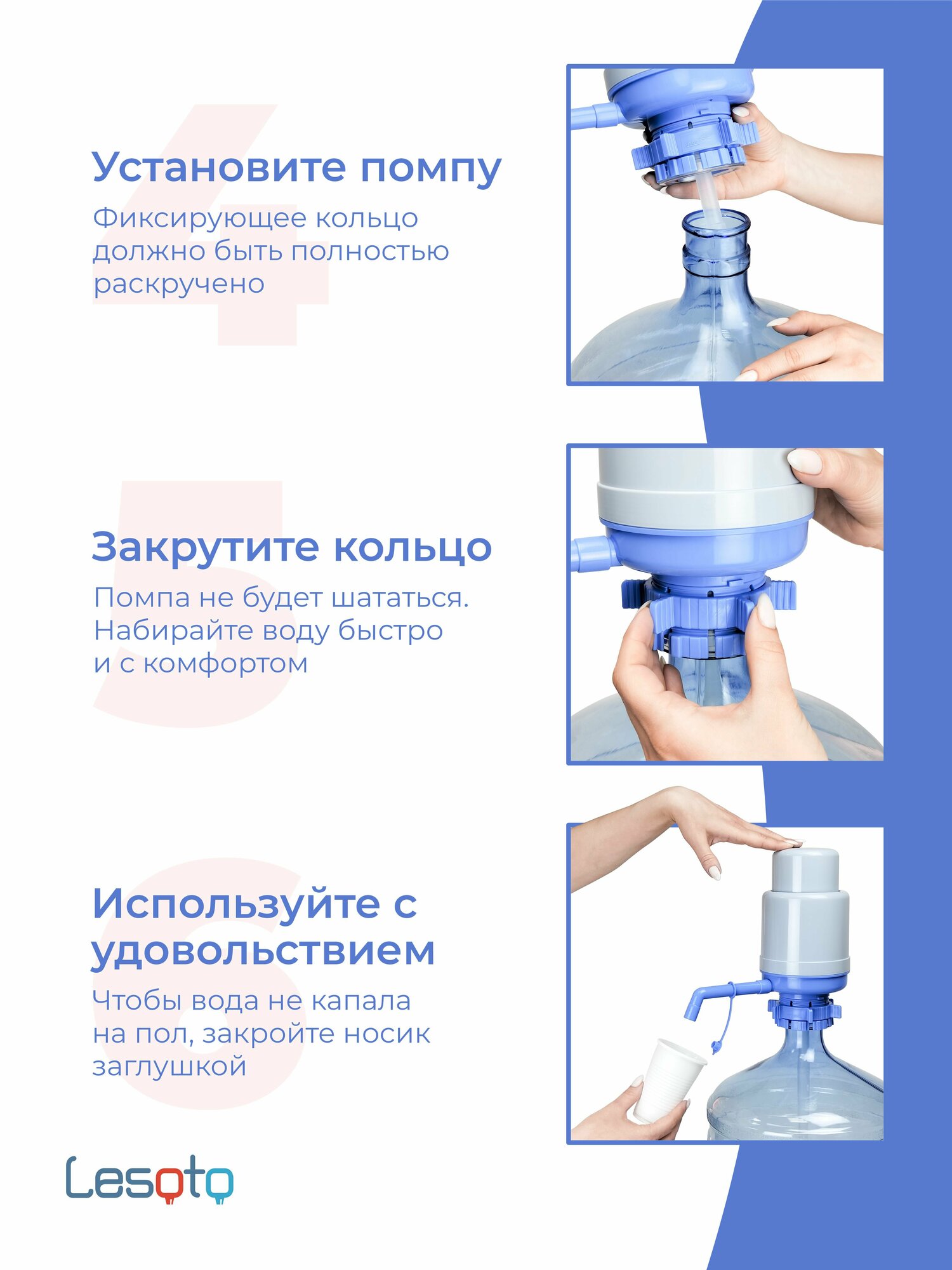 Помпа для воды ручная механическая, ручной насос для воды LESOTO Standart, диспенсер, дозатор бутылок для воды 19/12 л, аналог Dolphin, AquaWork, AEL