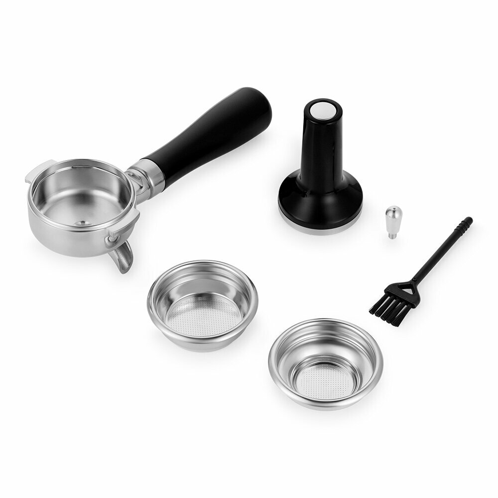 | Дополнительная информация | Комплектация 1. Кофейная станция — 1 шт. • Резервуар для воды с крышкой — 1 шт. • Поддон для капель с решеткой — 1 шт. • Резервуар для кофейных зерен с крышкой — 1 шт. • Внешний жернов — 1 шт. • Ручка стимера — 1 шт. • Насадка на стимер с уплотнителем — 1 шт. 2. Рожок — 1 шт. 3. Одинарный фильтр (single) — 1 шт. 4. Двойной фильтр (double) — 1 шт. 5. Темпер — 1 шт. 6. Щетка для чистки — 1 шт. 7. Руководство по эксплуатации — 1 шт. 8. Коллекционный магнит — 1 шт.* *опционально |