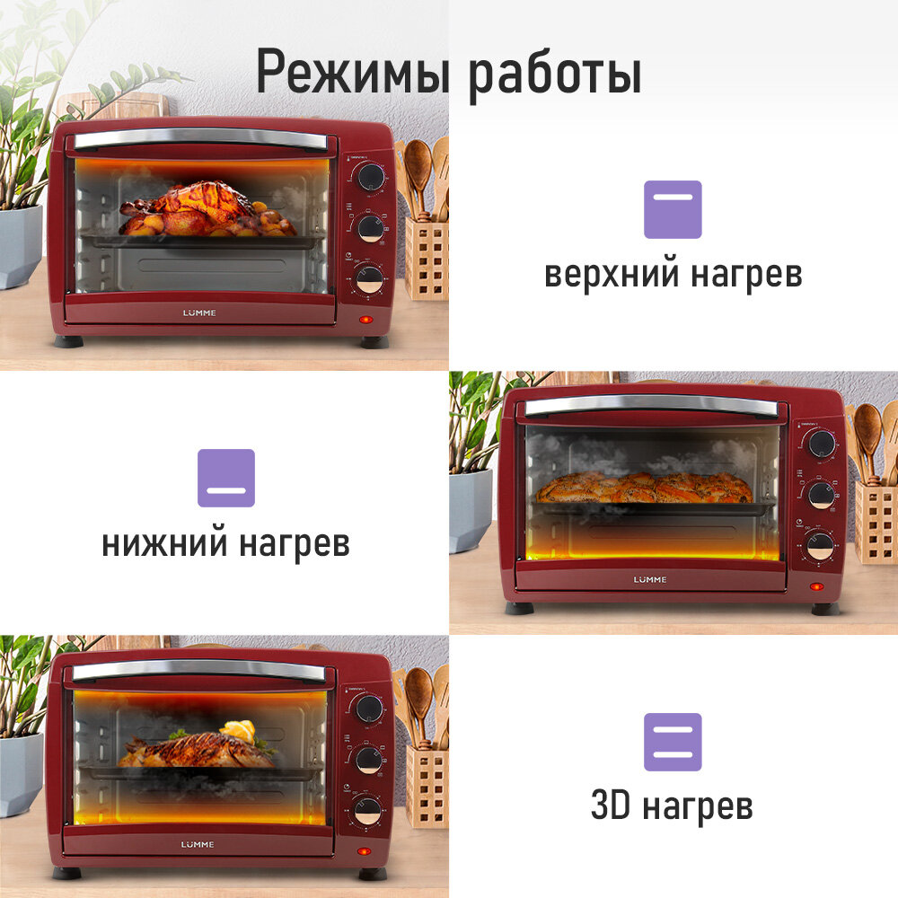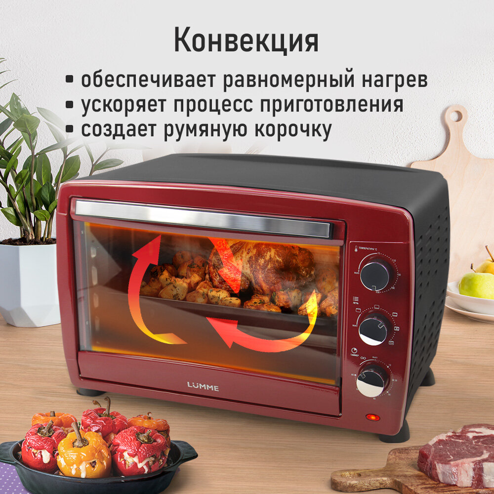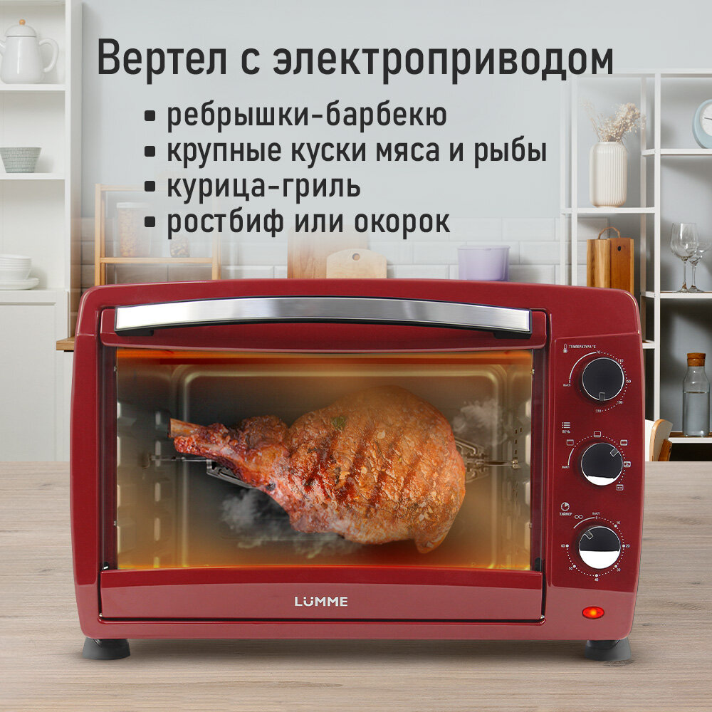 Мини-печь LUMME LU-EO1717B (50 литров, конвекция + вертел + гриль) бордовый гранат интересное: