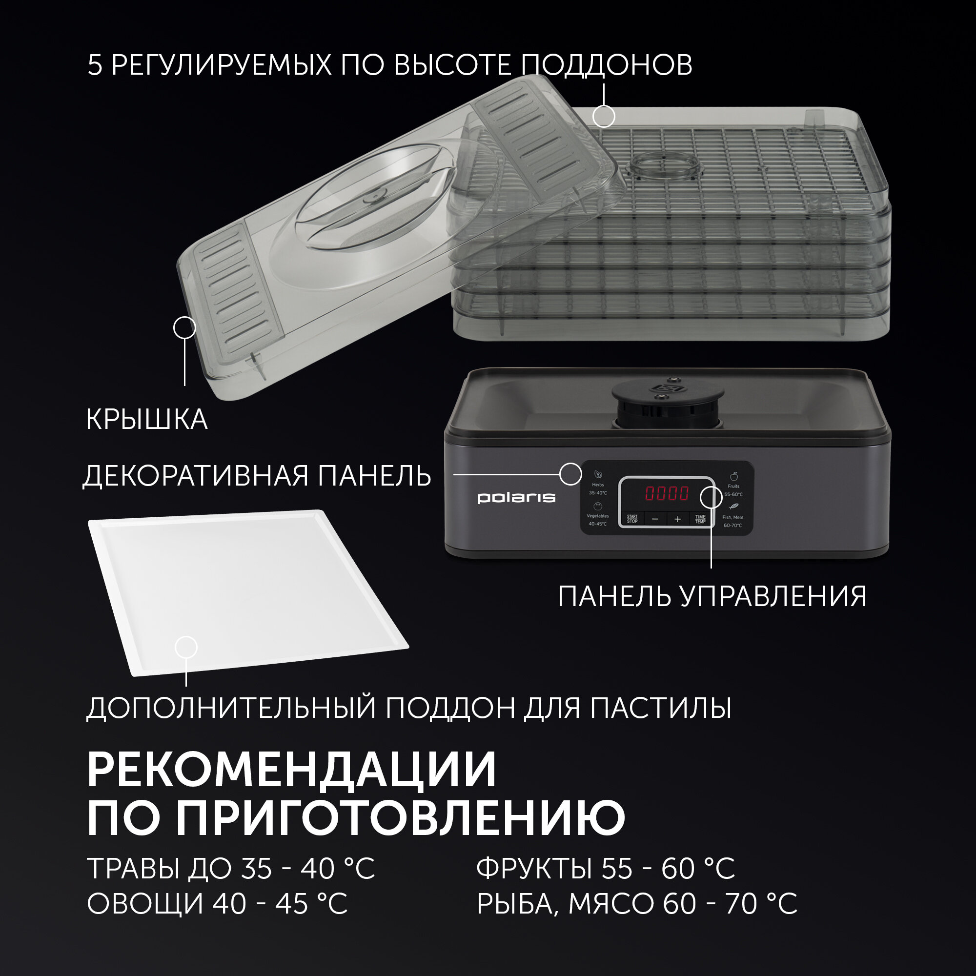 Сушилка для овощей и фруктов Polaris PFD 2108PV, черный, 6 поддонов