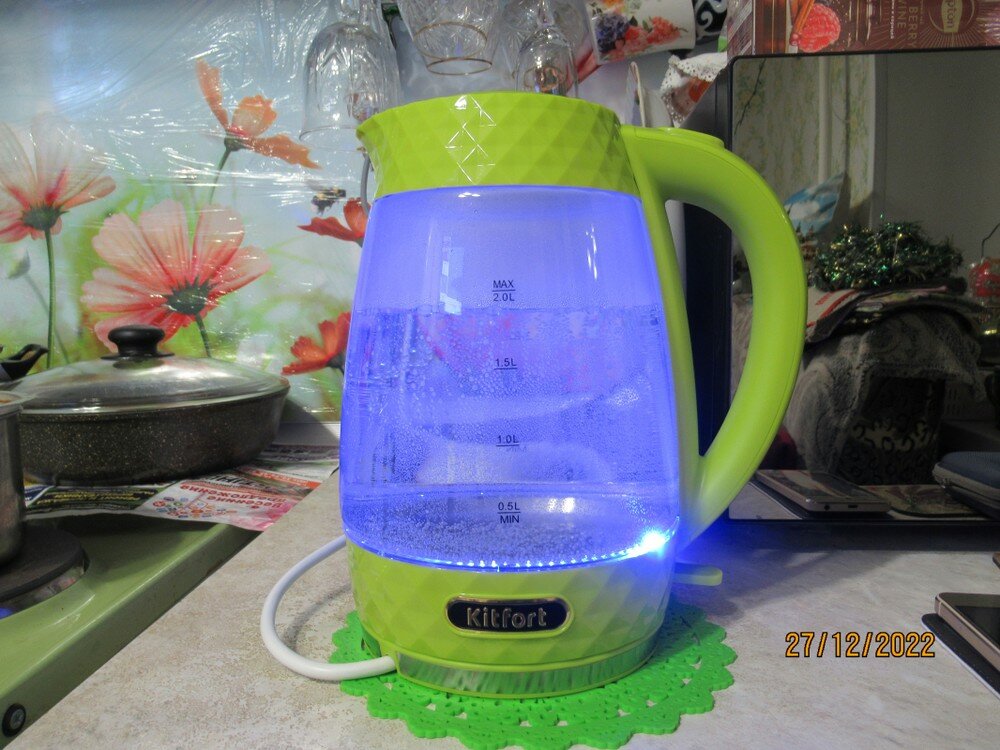 | Отзыв: | Покупку совершала полгода назад. Чайник работает без нареканий. Имеет хороший объём 2 литра. Красивый салатовый цвет чайника отлично вписался в дизайн кухни. Чайник имеет подсветку. Красиво светится в темноте. Очень довольна покупкой. |