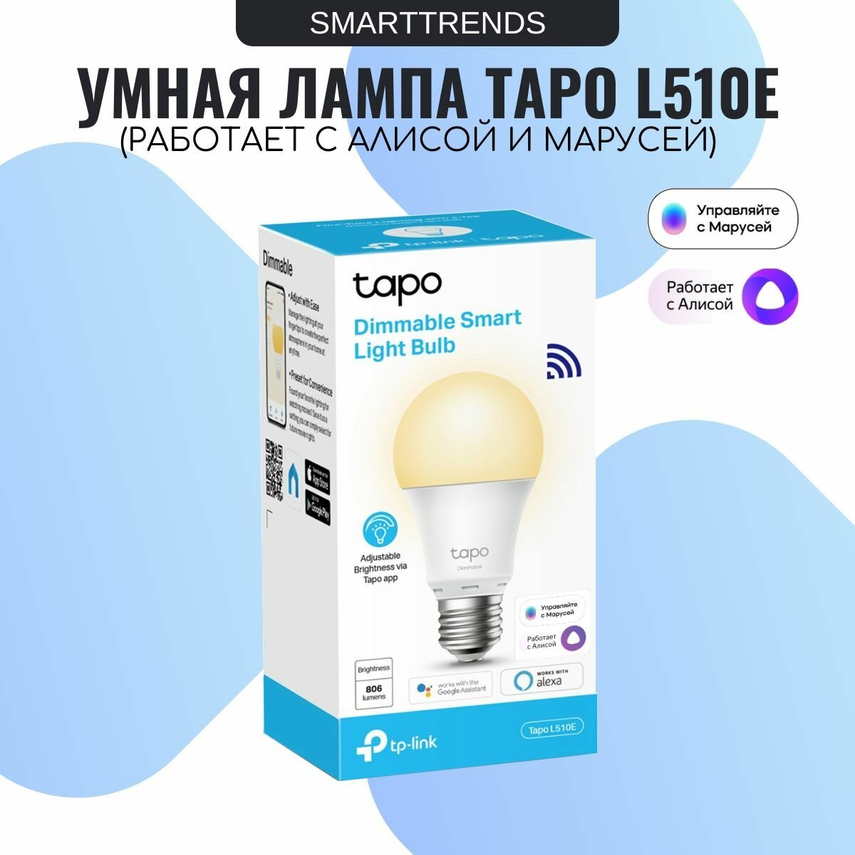 Купить Умная лампочка Яндекс, Алиса, Маруся, TP-Link Tapo L510E, Wi Fi диммируемая