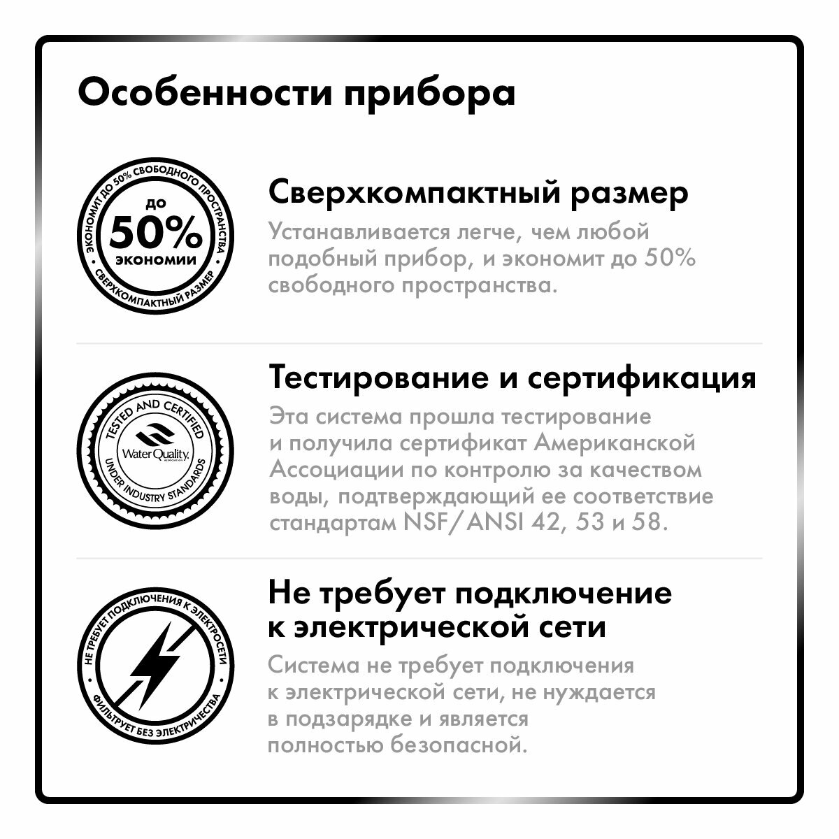 | Функции очистки | обратный осмос / очистка от бактерий / очистка от ржавчины |