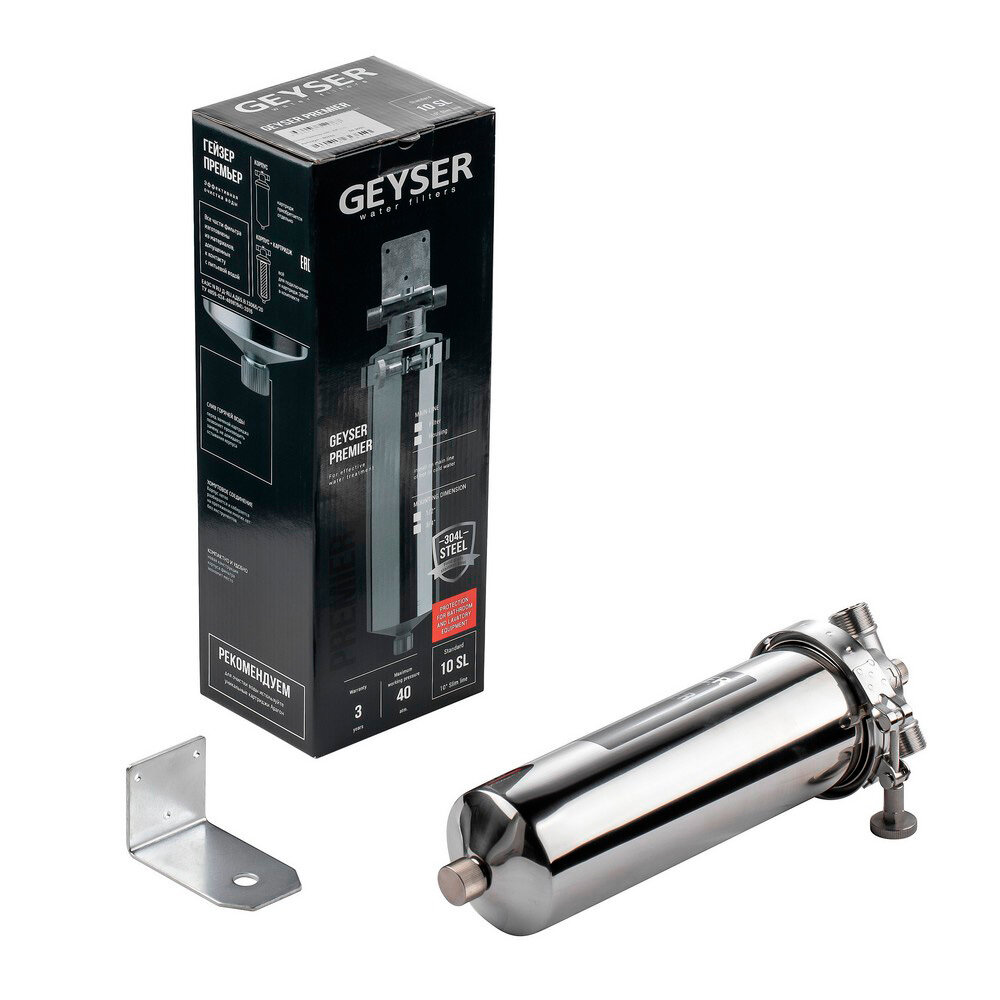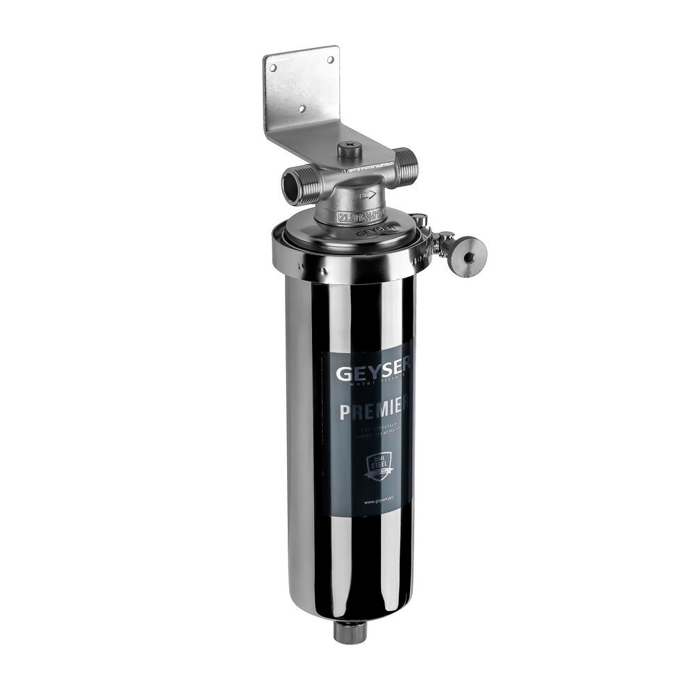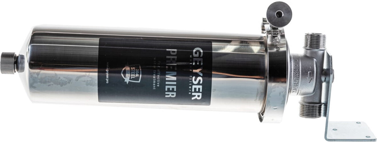Корпус фильтра Гейзер Премьер для горячей и холодной воды нержавеющая сталь 10SL 3/4 НР(ш) х 3/4 НР(ш) серый интересное: