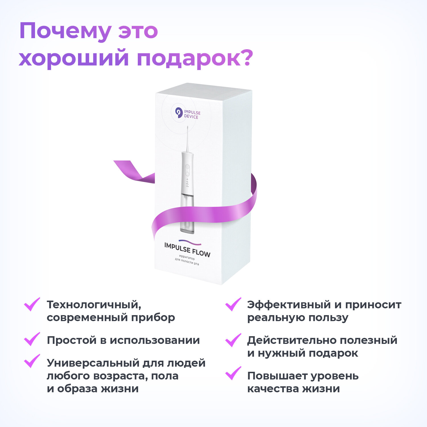 Ирригатор для зубов Impulse Flow беспроводной, портативный, цвет белый интересное: