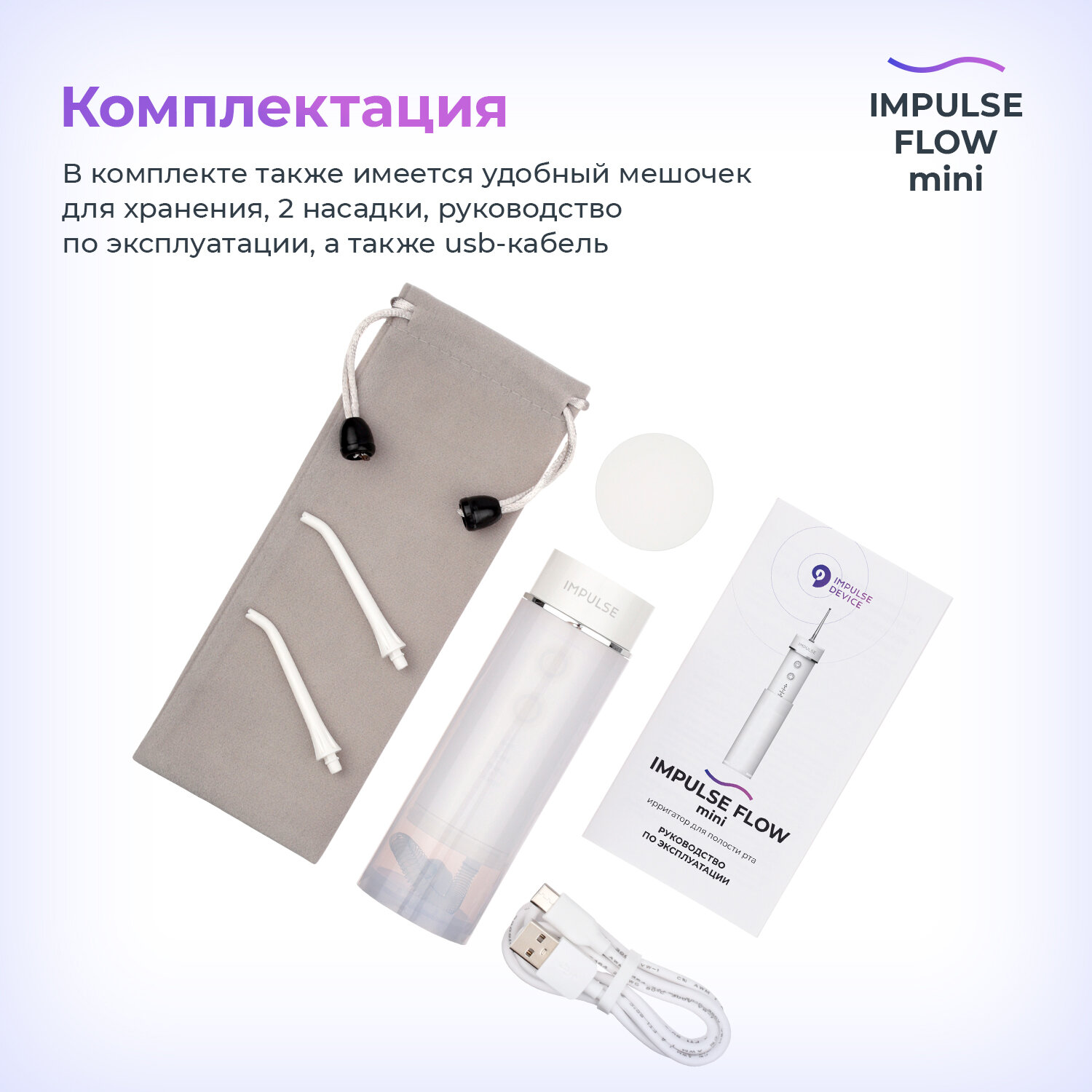 Ирригатор для зубов Impulse Flow mini беспроводной, портативный, цвет белый интересное: