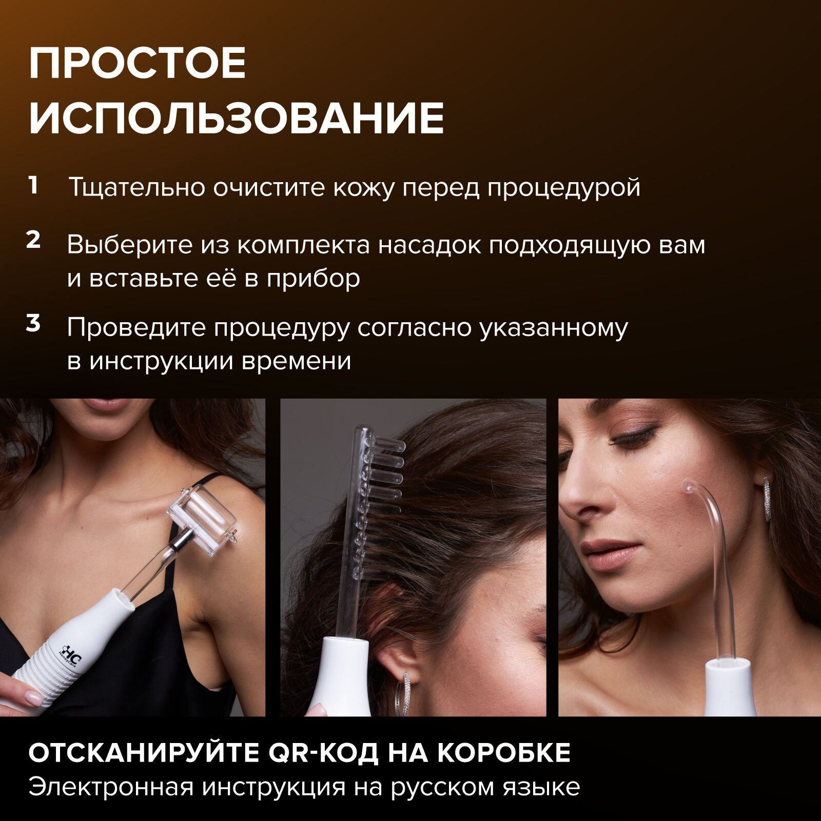 Дарсонваль HoneyCare для волос, лица и тела с 5 насадками. Аппарат дарсонваль для физиотерапии