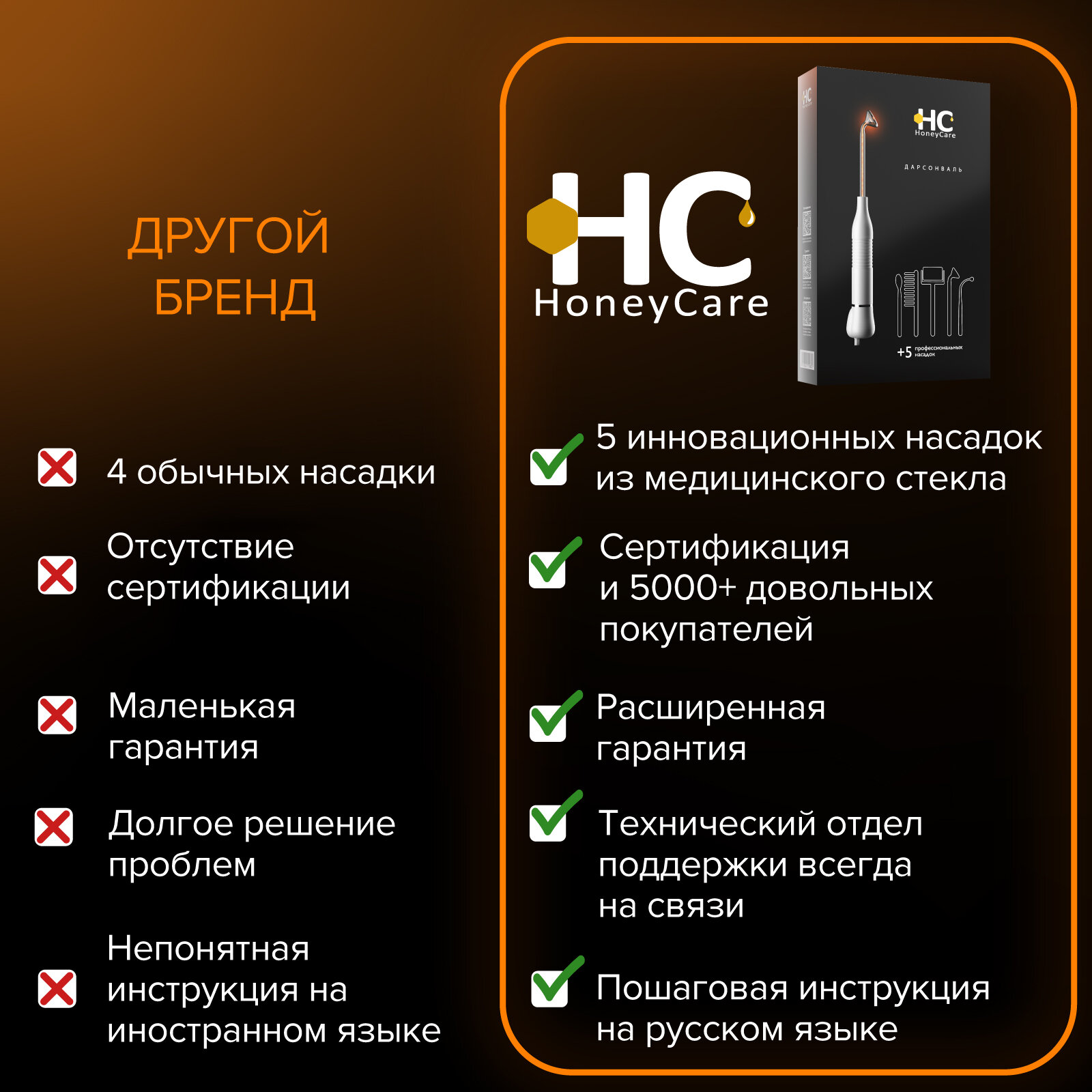 Дарсонваль для волос, лица и для тела с 5 насадками. Аппарат дарсонваль HoneyCare профессиональный уход за лицом в домашних условиях