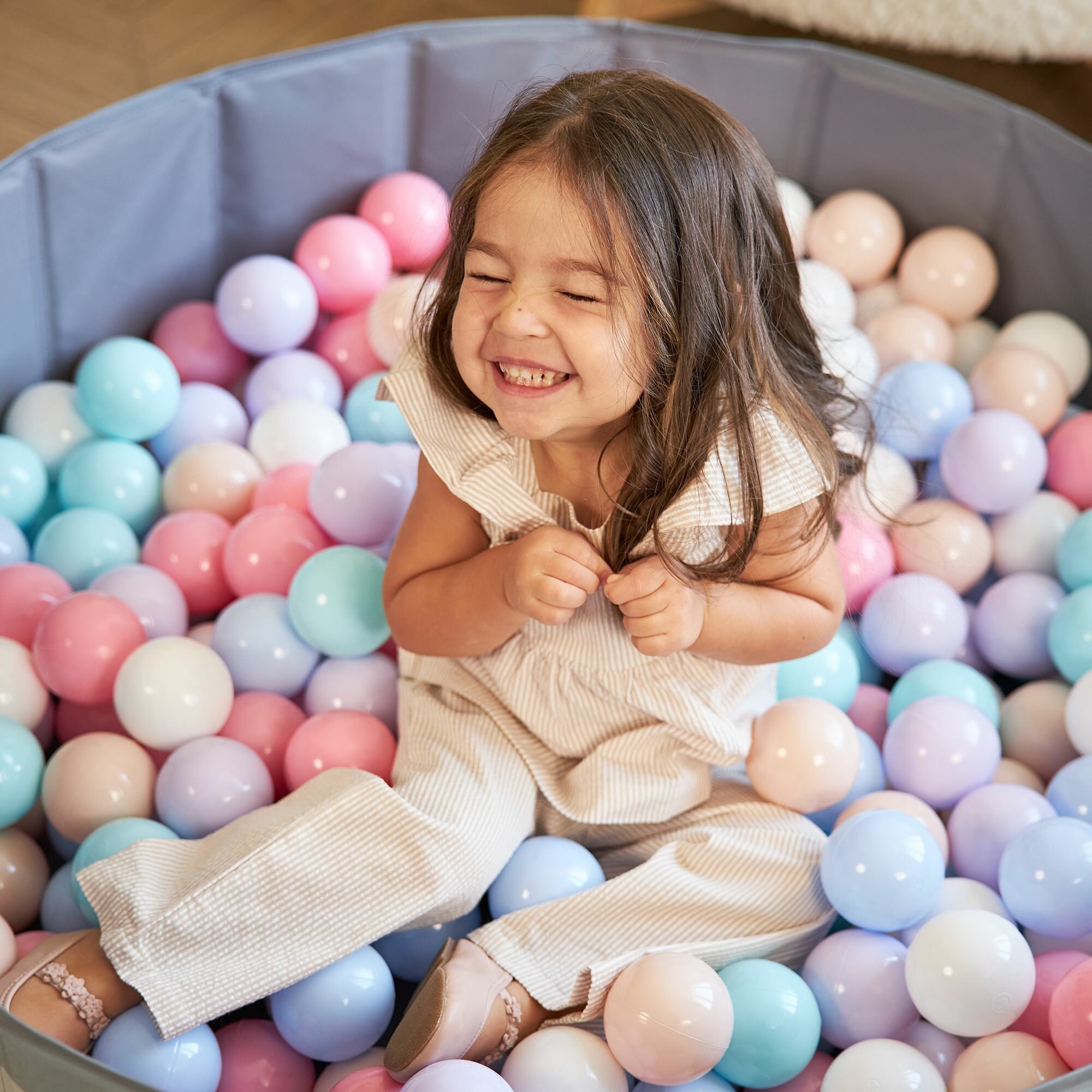 Детский сухой бассейн UNIX Kids Smile 100 Camel + 150 шариков 3 цвета, складной, сумочка в комплекте, высота бортиков 30 см, диаметр шарика 70 мм