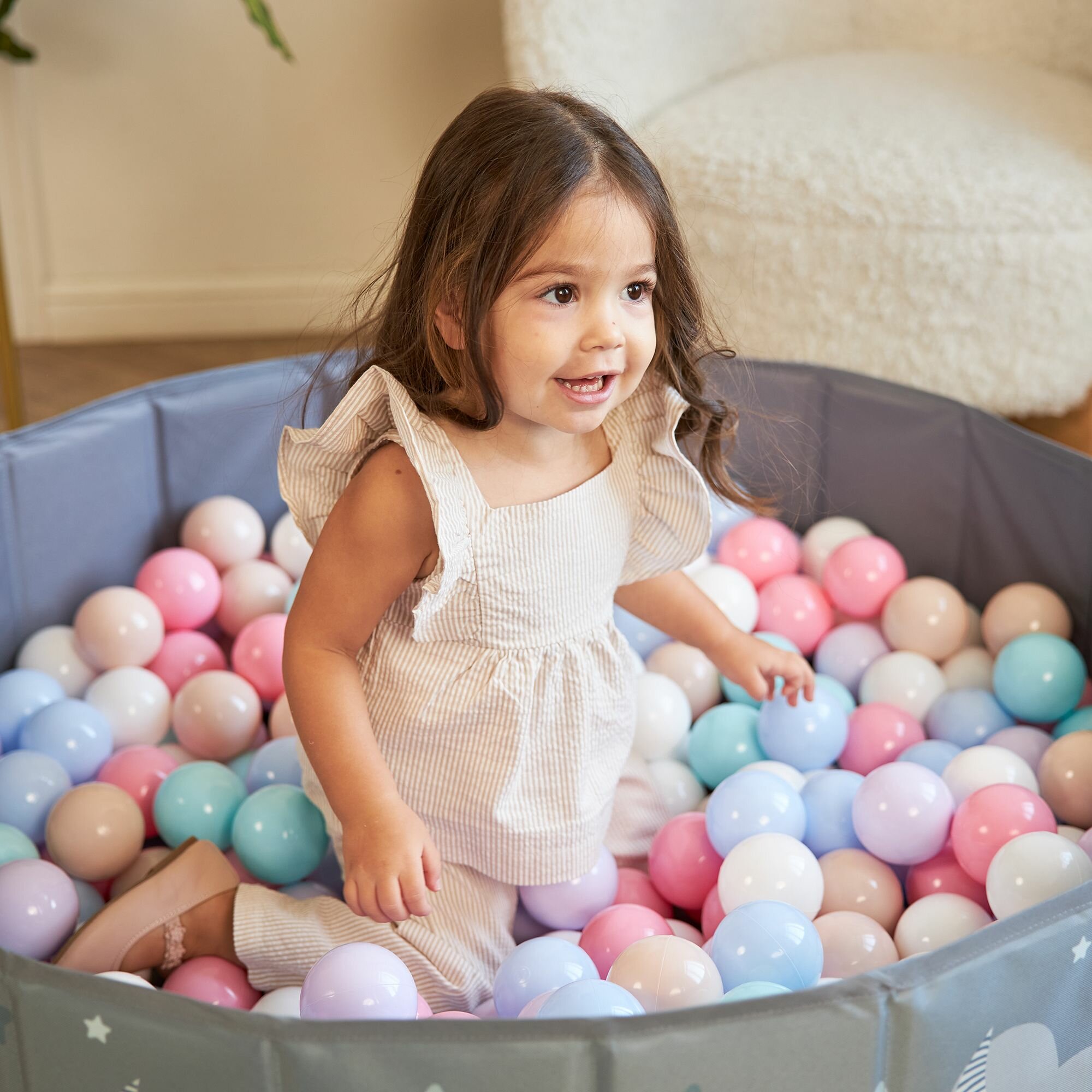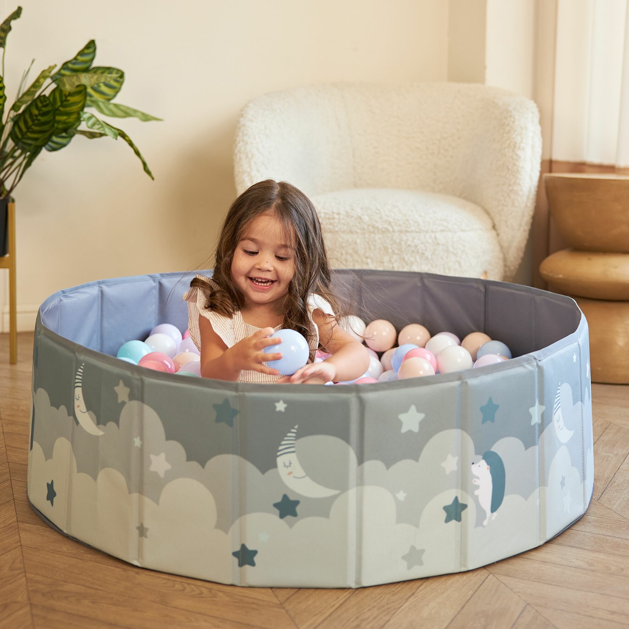 | Отзыв: | Очень нравится малышу бассейн, шарики не сильно яркие, удобно то, что быстро и легко складывается и можно спокойно взять с собой куда угодно |