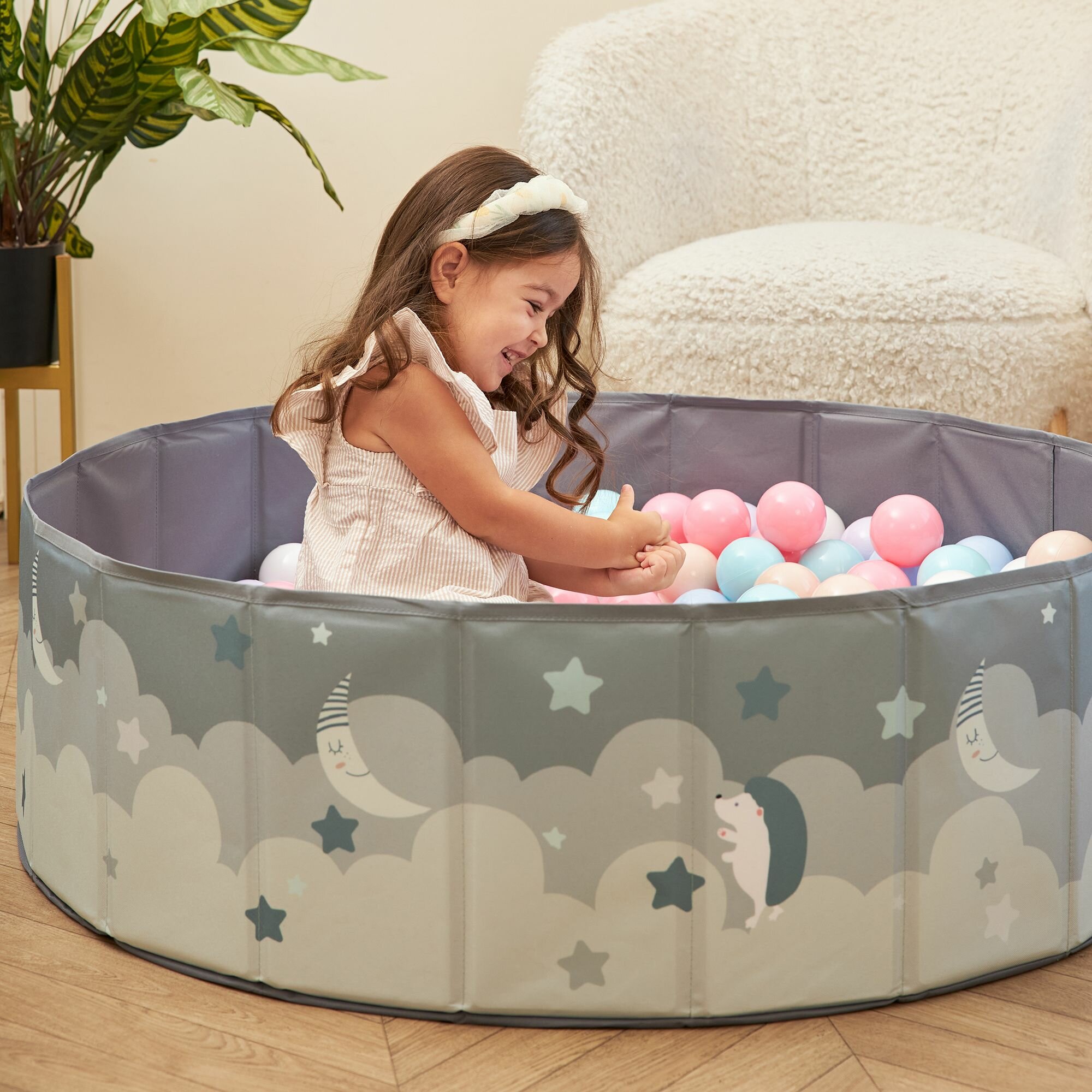 СохранитьДетский сухой бассейн UNIX Kids Moon 100 см Grey + 150 шариков 6 цветов, складной, сумочка в комплекте, высота бортиков 30 см, диаметр шарика 70 мм интересное: